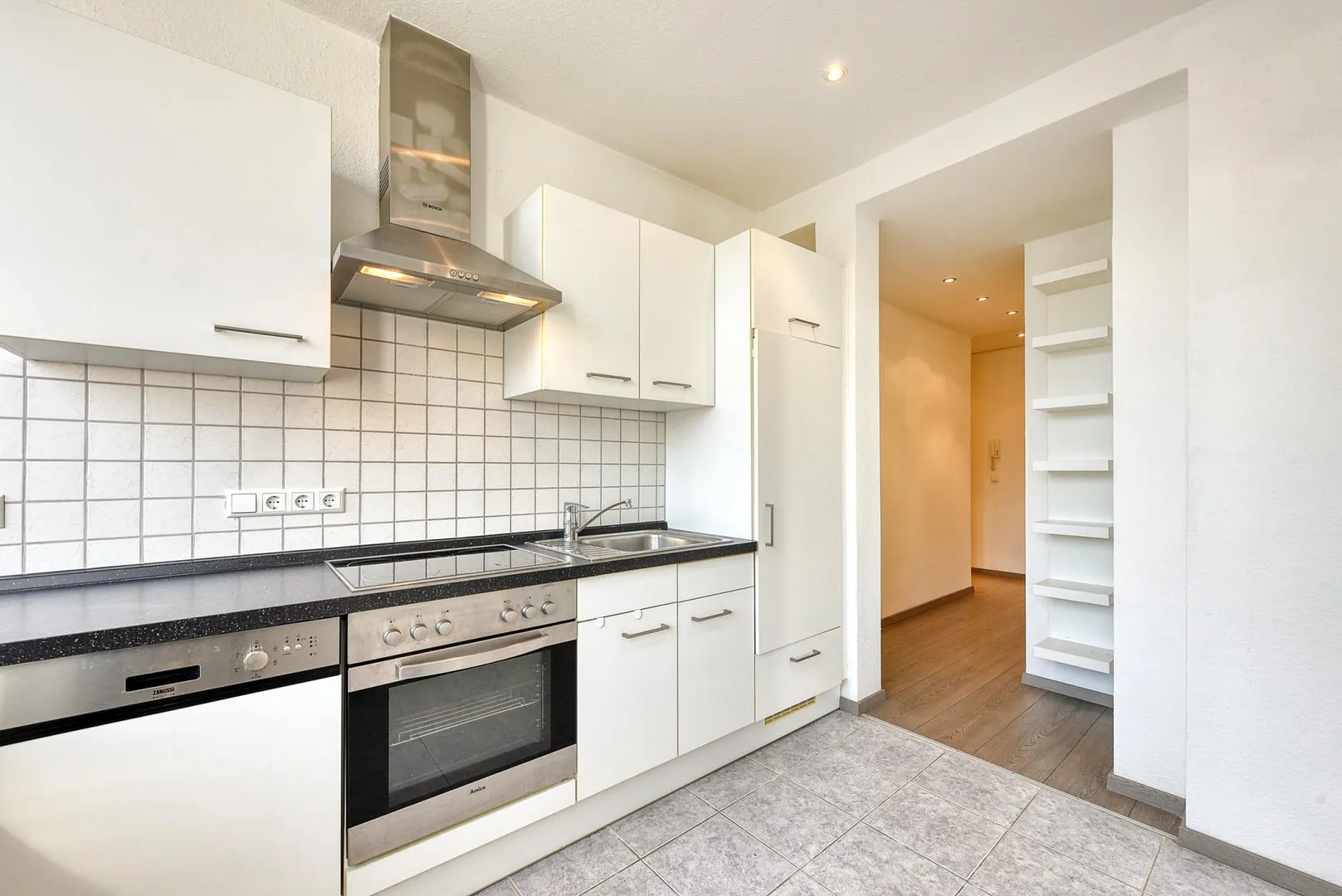 Die Küche ist mit einer Einbauküche ausgestattet. Die Einbauküche verfügt über alle notwendigen E-Geräte sowie Unter- und Oberschränke.