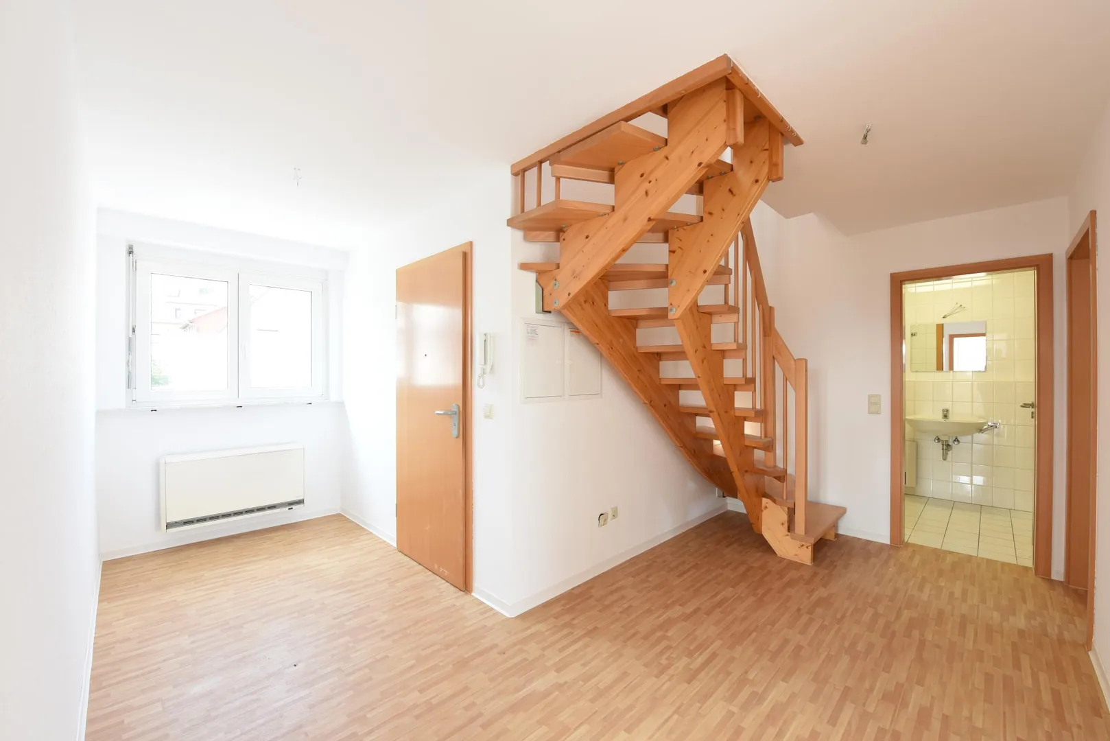 Diese individuelle 4-Zimmer-Dachgeschoss-Maisonette-Wohnung befindet sich im 2. Obergeschoss einer 6-Familien-Doppelhaushälfte.