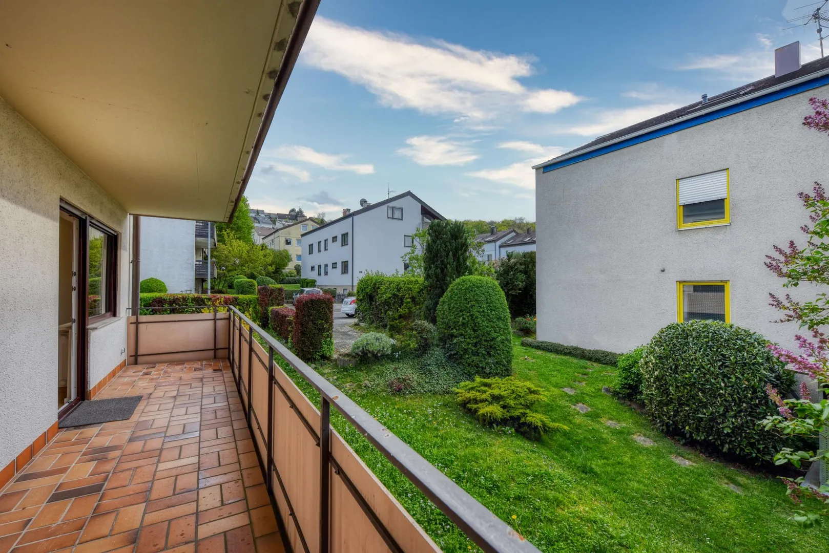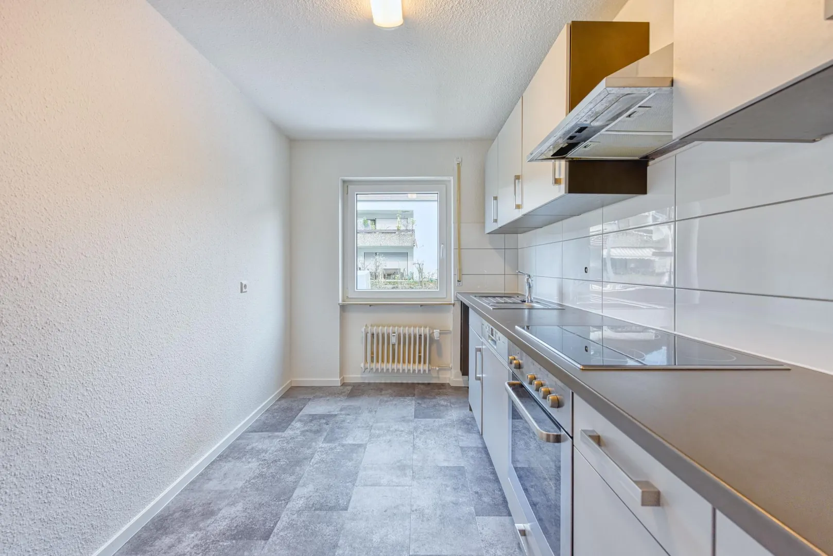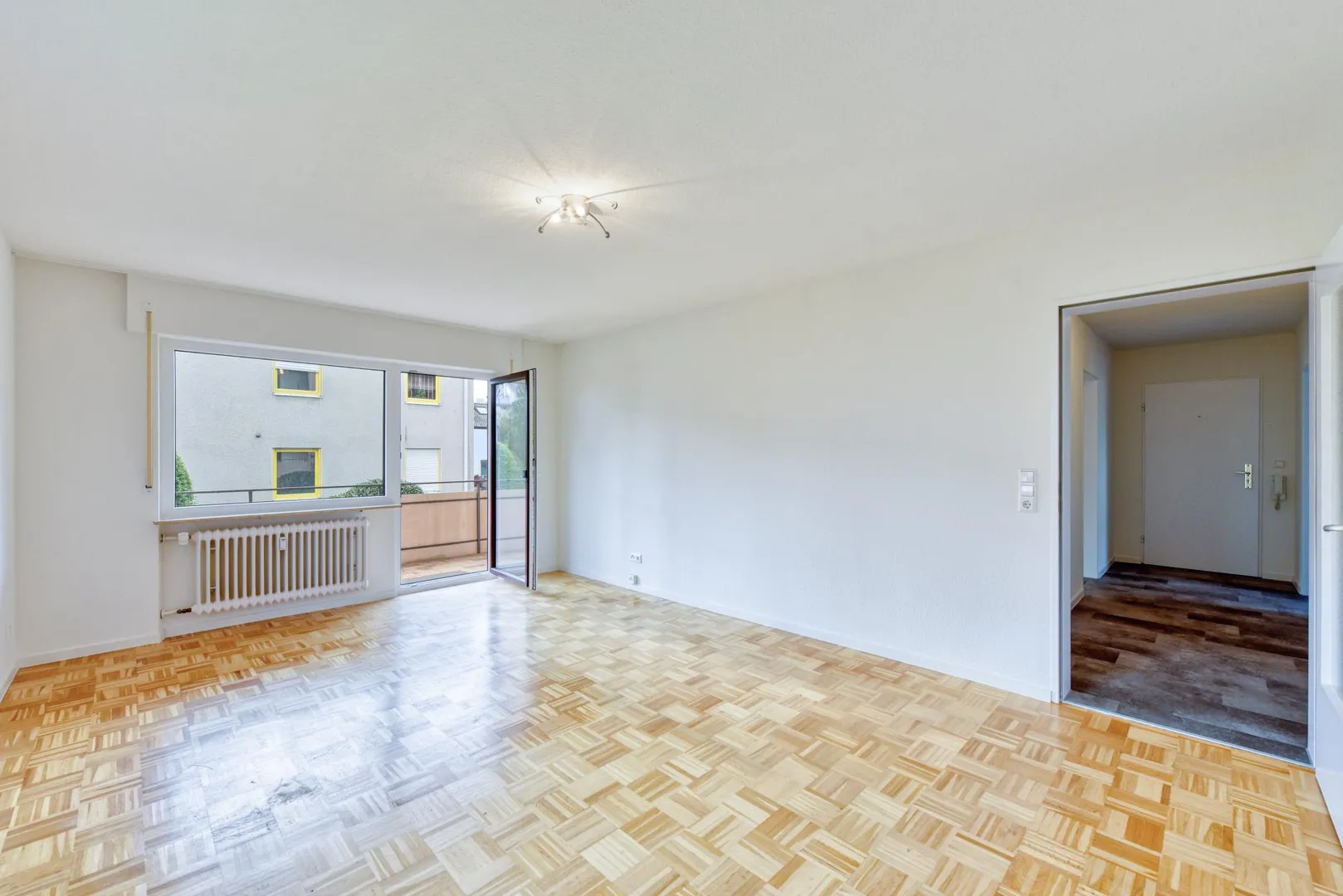 Diese frisch renovierte 3-Zimmer-Wohnung mit Balkon befindet sich im Hochparterre (Erdgeschoss).