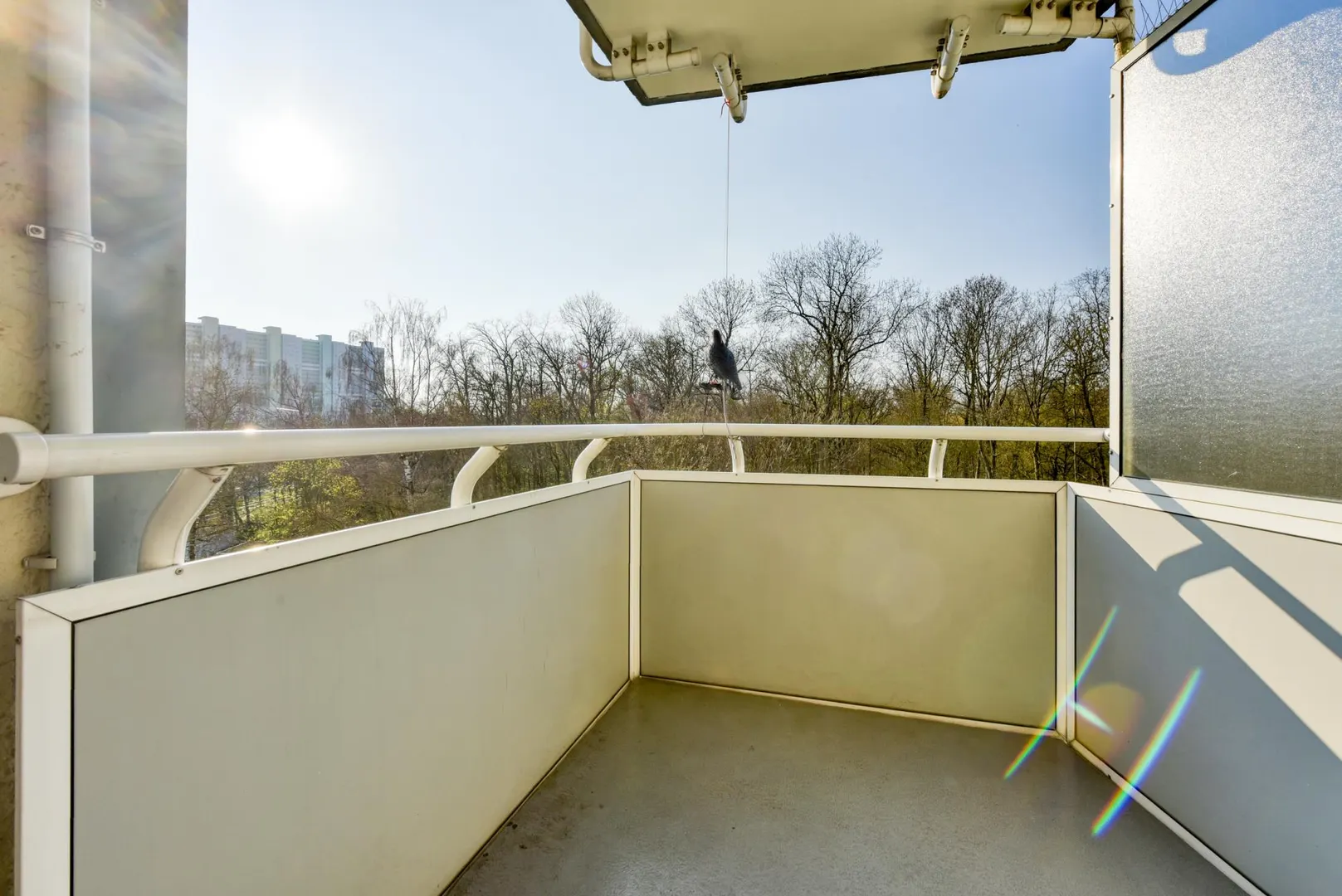 Der ca. 6 m² große und überdachte Süd/West-Balkon ist vom Wohnzimmer begehbar. Das Badezimmer ist innenliegend. Das Schlafzimmer ist über das Wohnzimmer begehbar. In der Wohnung gibt es einen Abstellraum.
