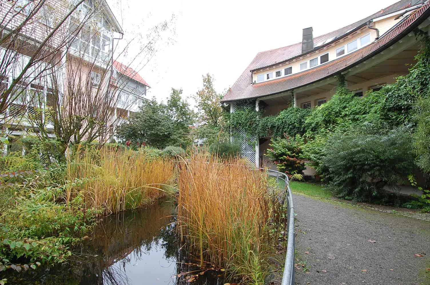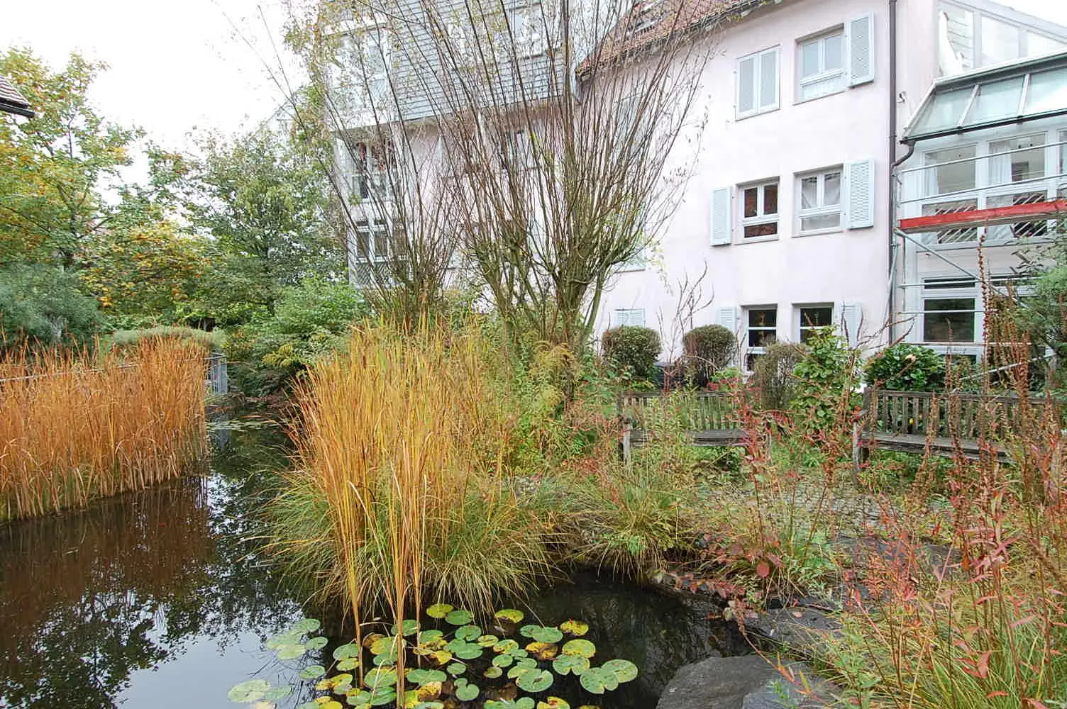 Die Wohnung ist nach Westen ausgerichet. Aufgrund des gewachsenen Baumbestands ist viel Schatten vorhanden.