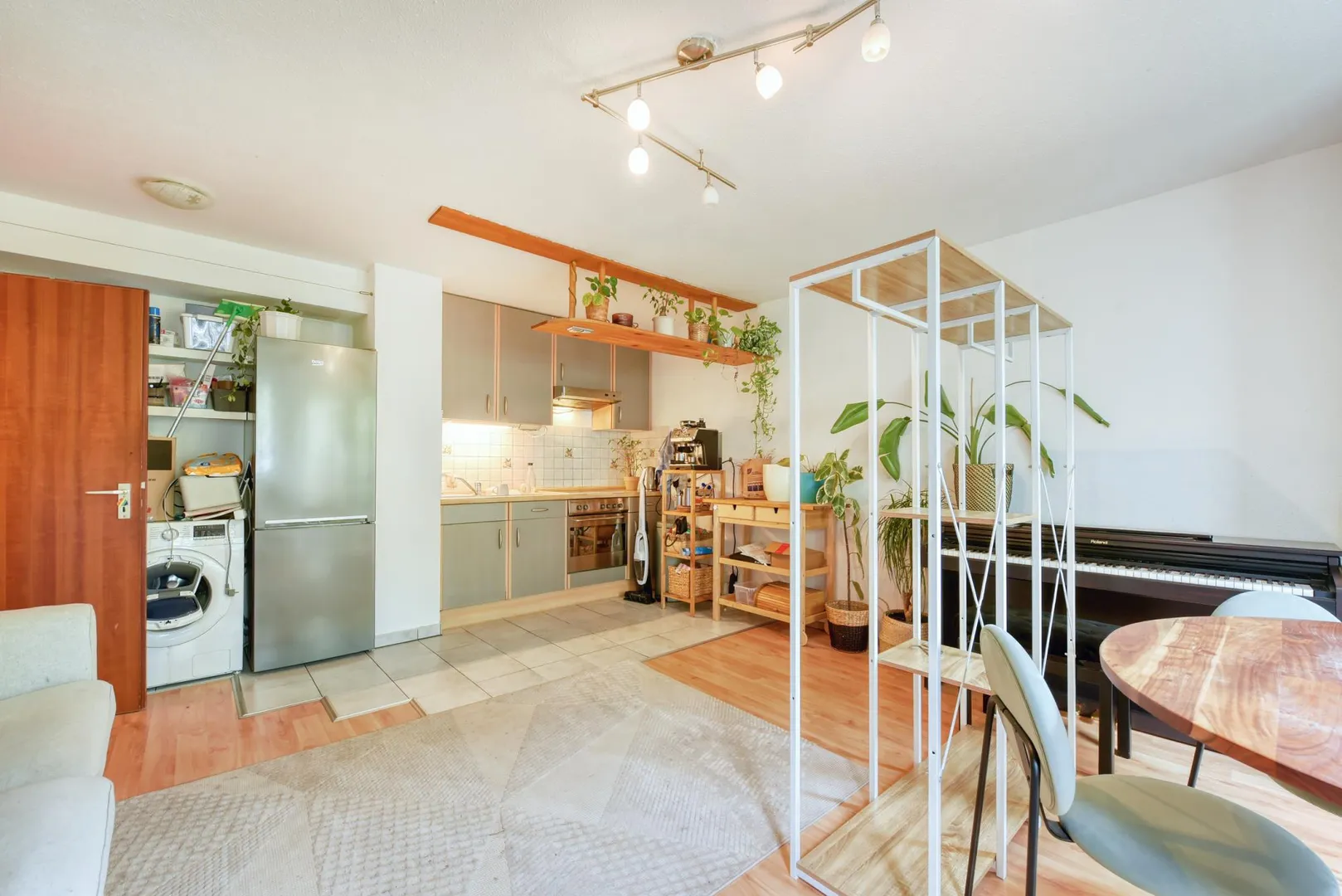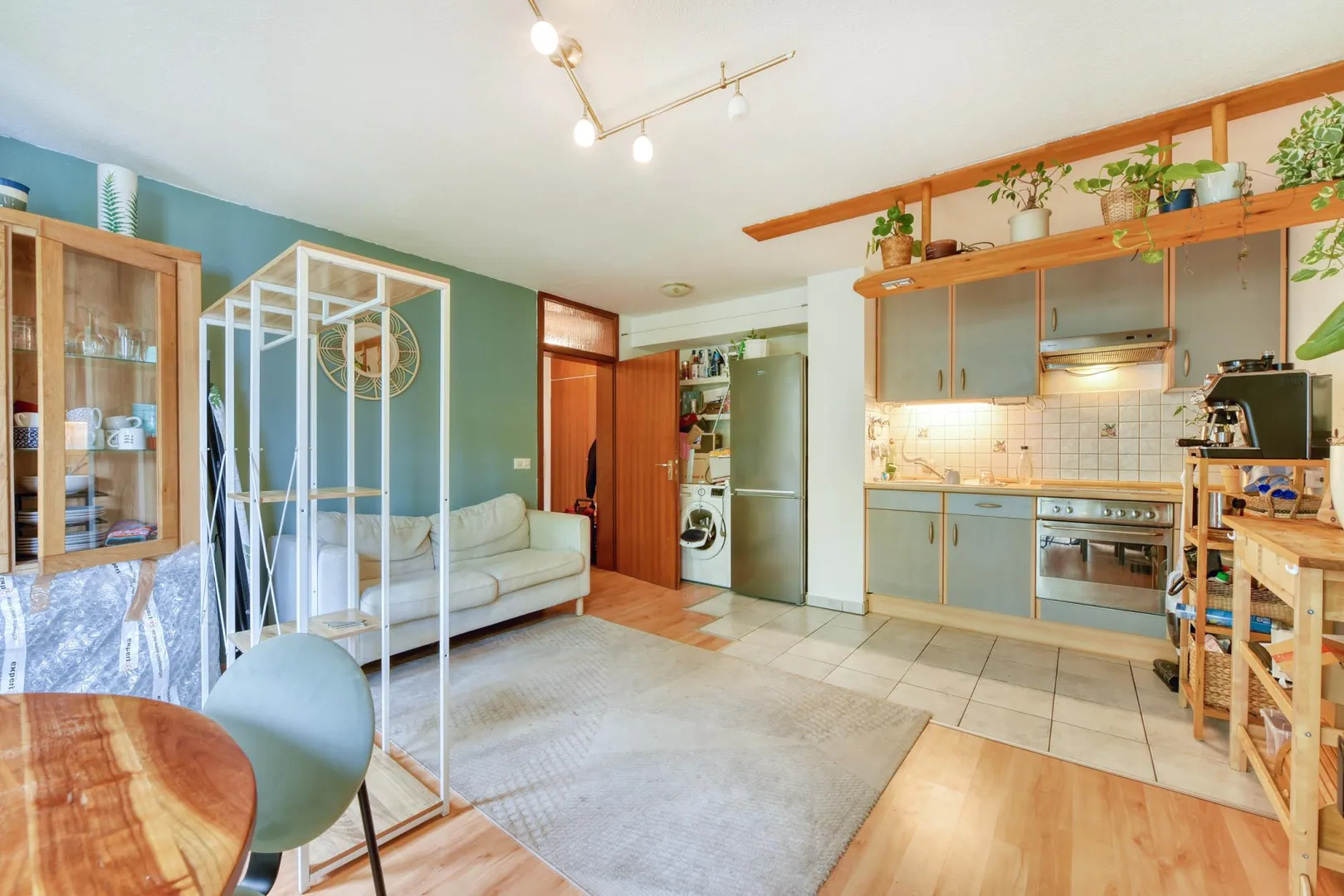 Gemeinschaftlich gibt es einen Münz-Waschautomaten im Untergeschoss. In der offenen Küche gibt es einen Waschmaschinenanschluss. Die Waschmaschine kann vom aktuellen Mieter übernommen werden.
