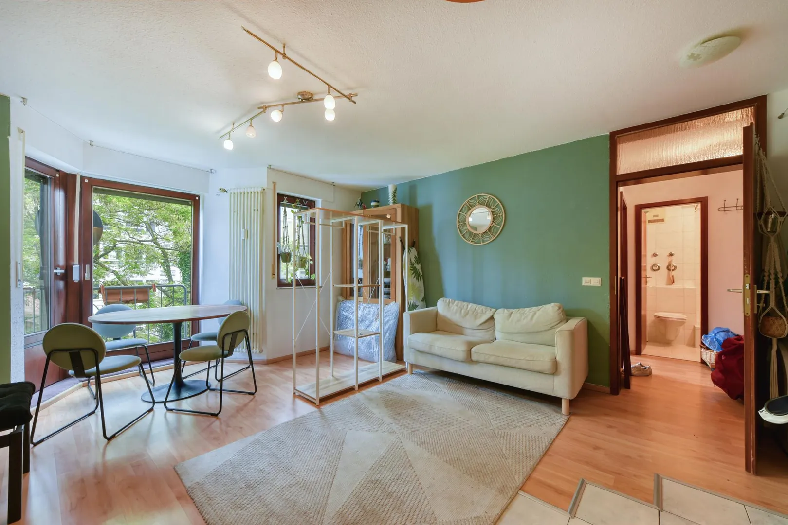 Die Wohnung befindet sich unmittelbar am Berliner Platz und ist von der Straße abgeneigt, zum grünen Innenhof hin.