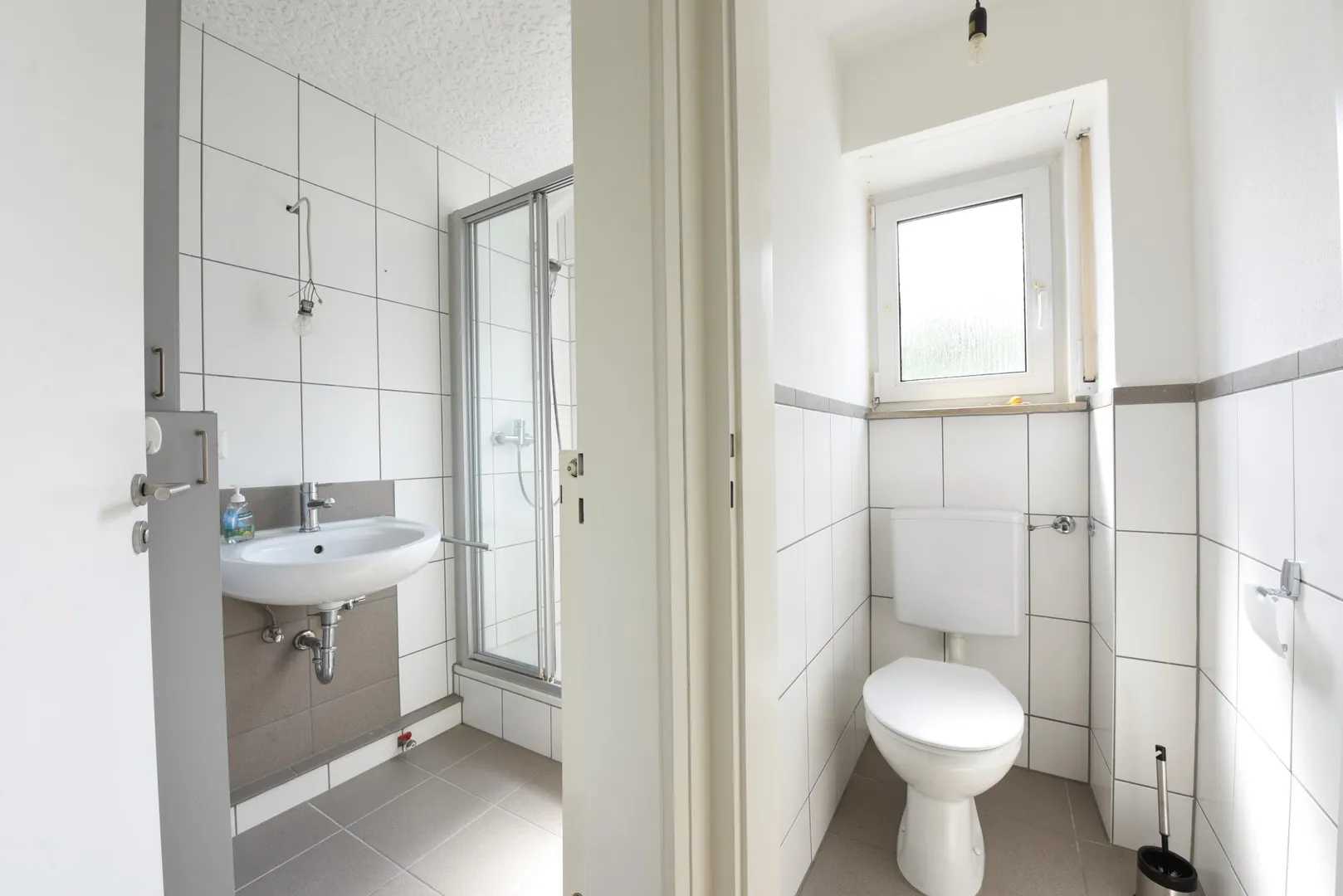 Das separate WC mit Fenster ist mit einem Fliesenboden ausgestattet.