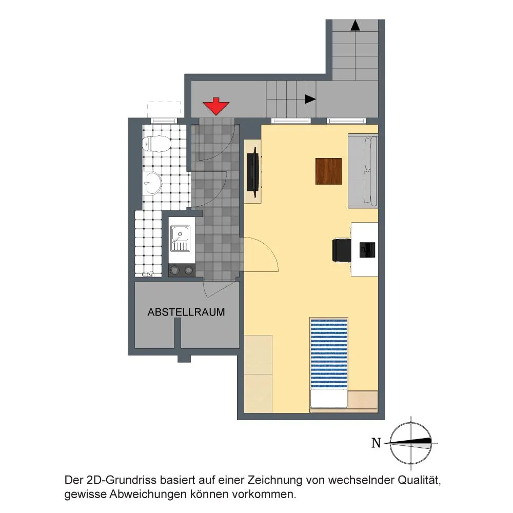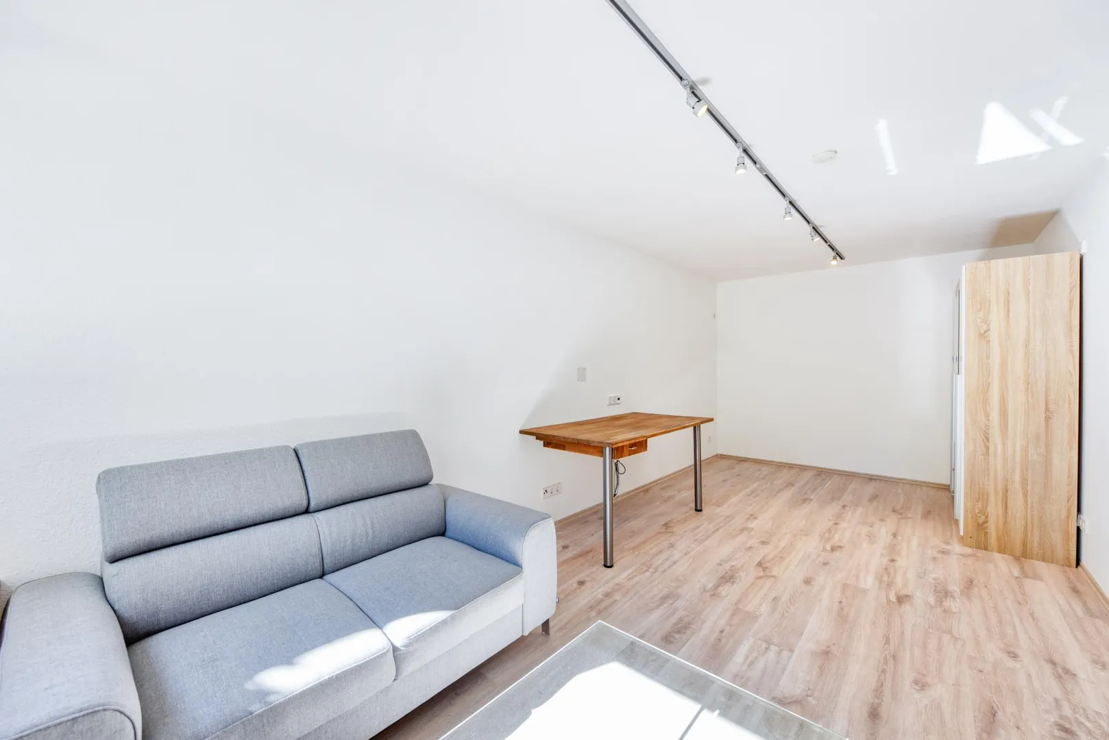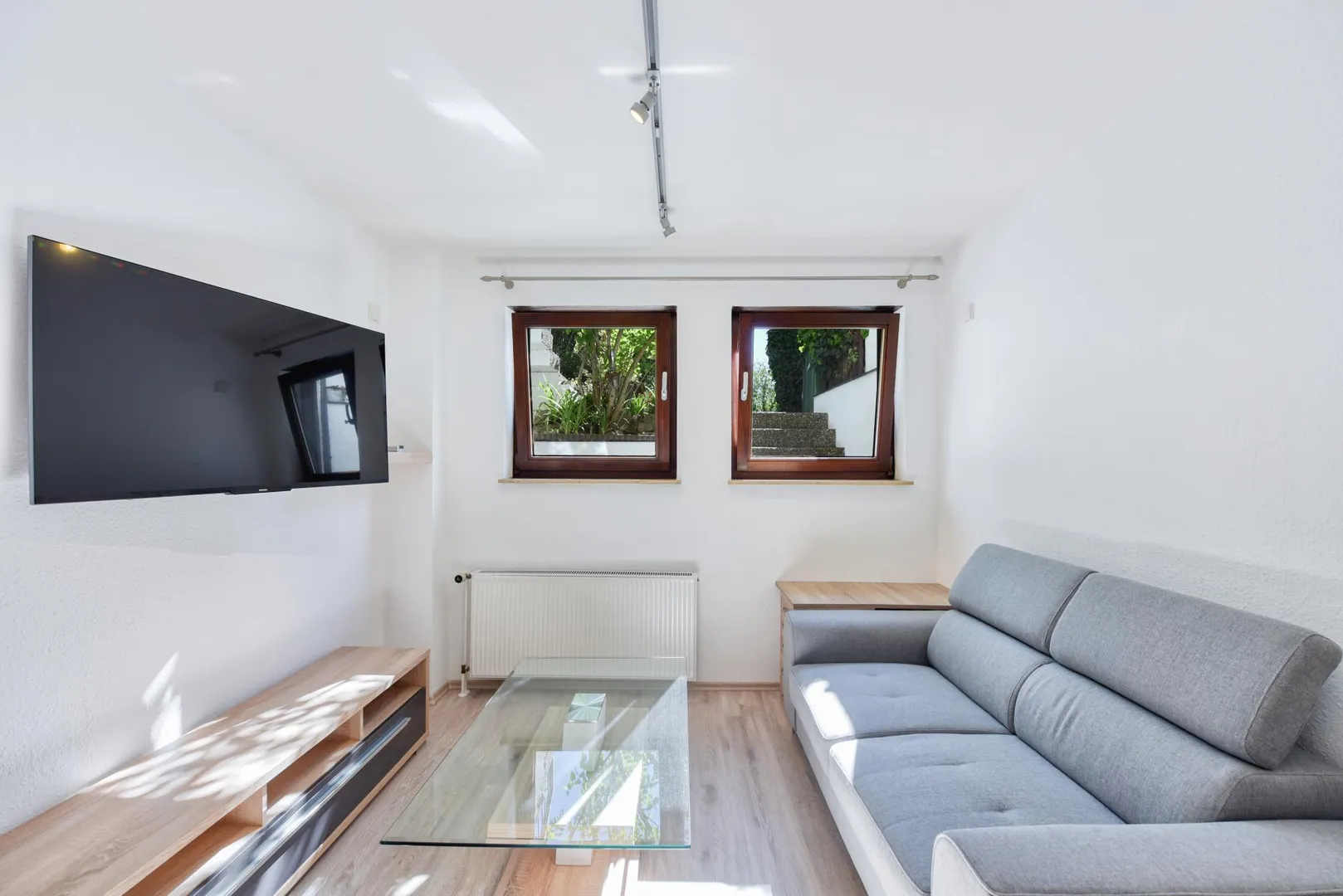 Diese gemütliche, frisch renovierte und fast vollständig möblierte 1-Zimmer-Einlieger-Wohnung mit eigenem Eingang befindet sich im Soutterain (Untergeschoss) eines 2-Familien-Reiheneckhauses.