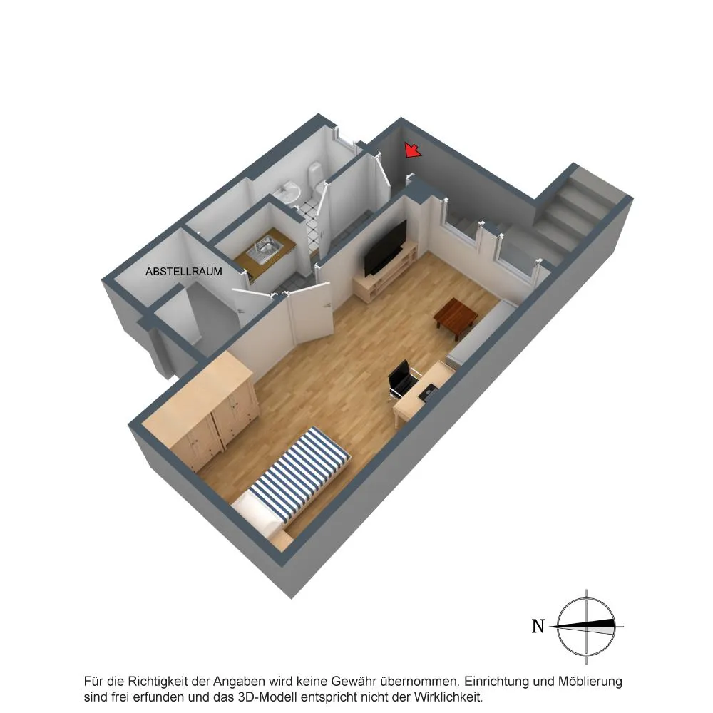 Diese gemütliche, frisch renovierte und fast vollständig möblierte 1-Zimmer-Einlieger-Wohnung mit eigenem Eingang befindet sich im Soutterain (Untergeschoss).