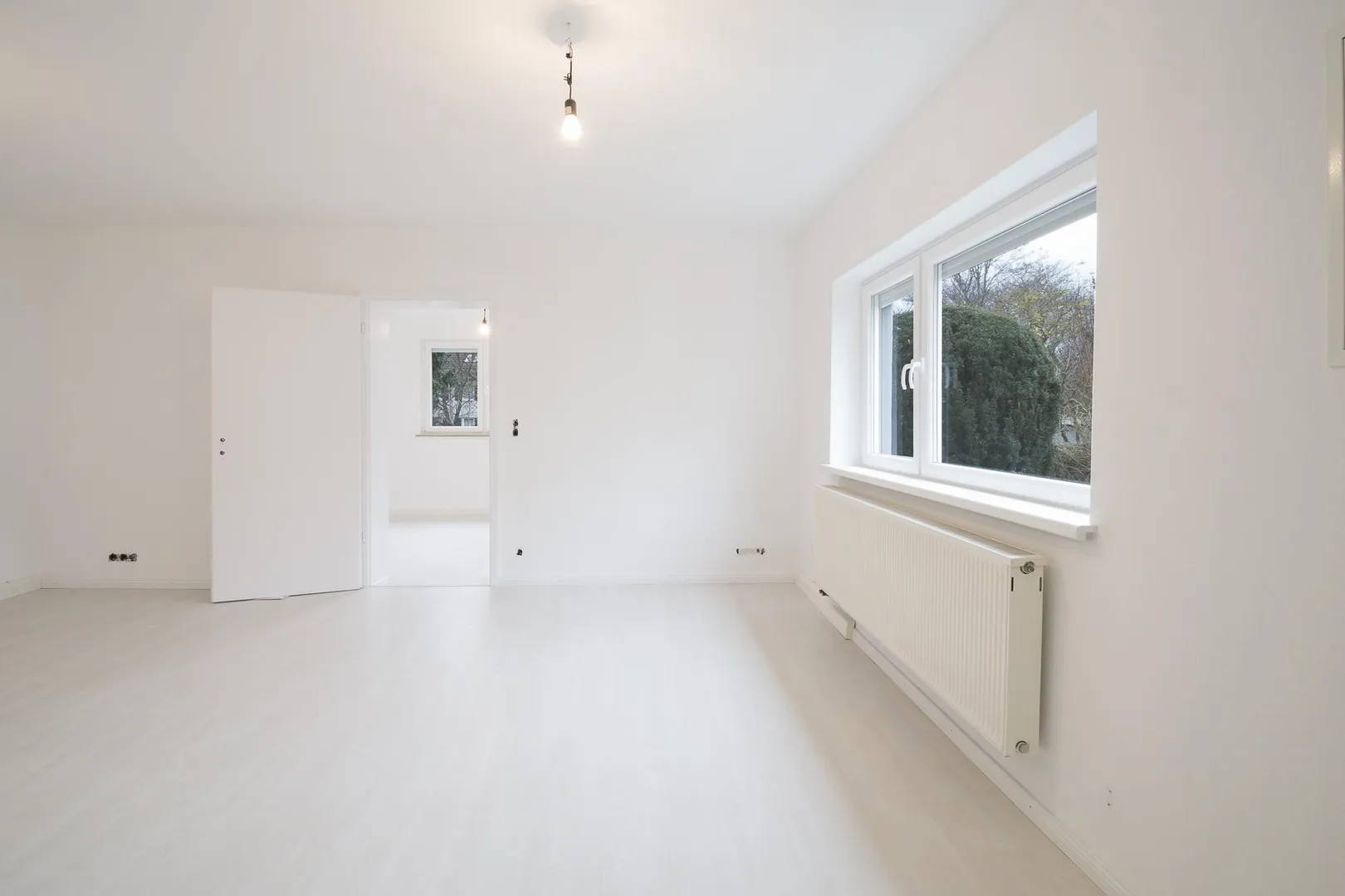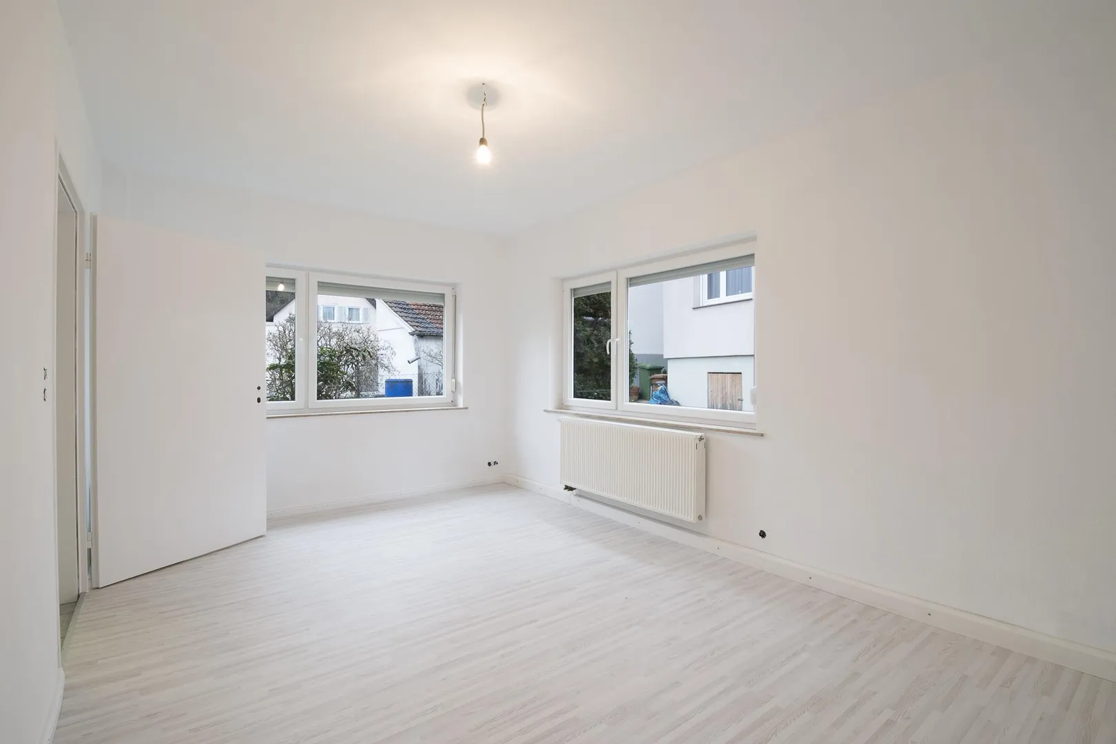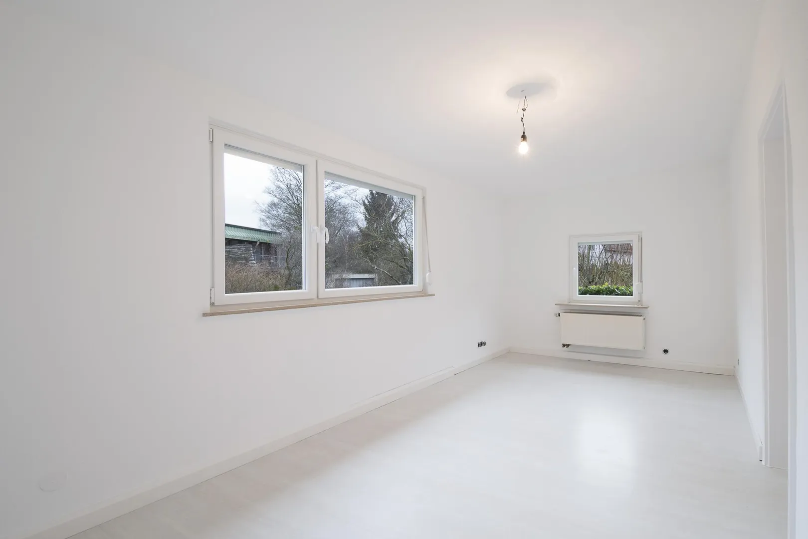 In den Zimmern sind Laminatböden verlegt. Die Wände wurden frisch tapeziert und sind weiß gestrichen.