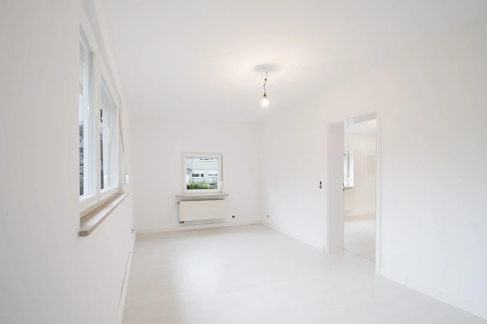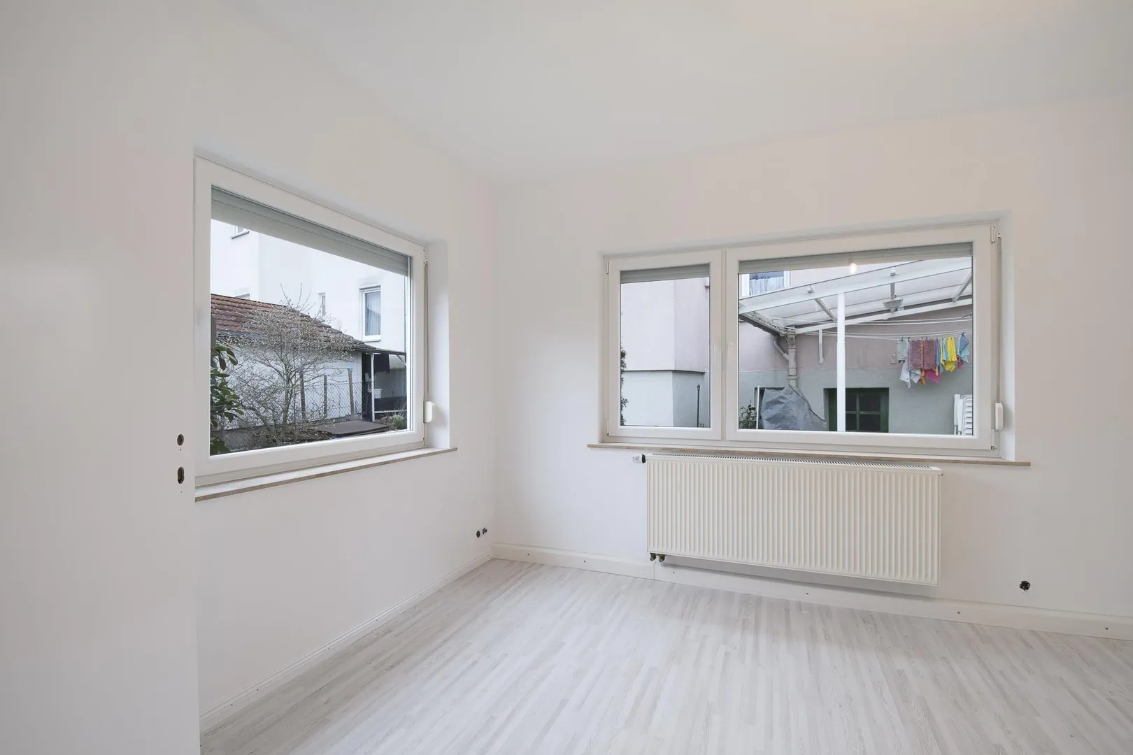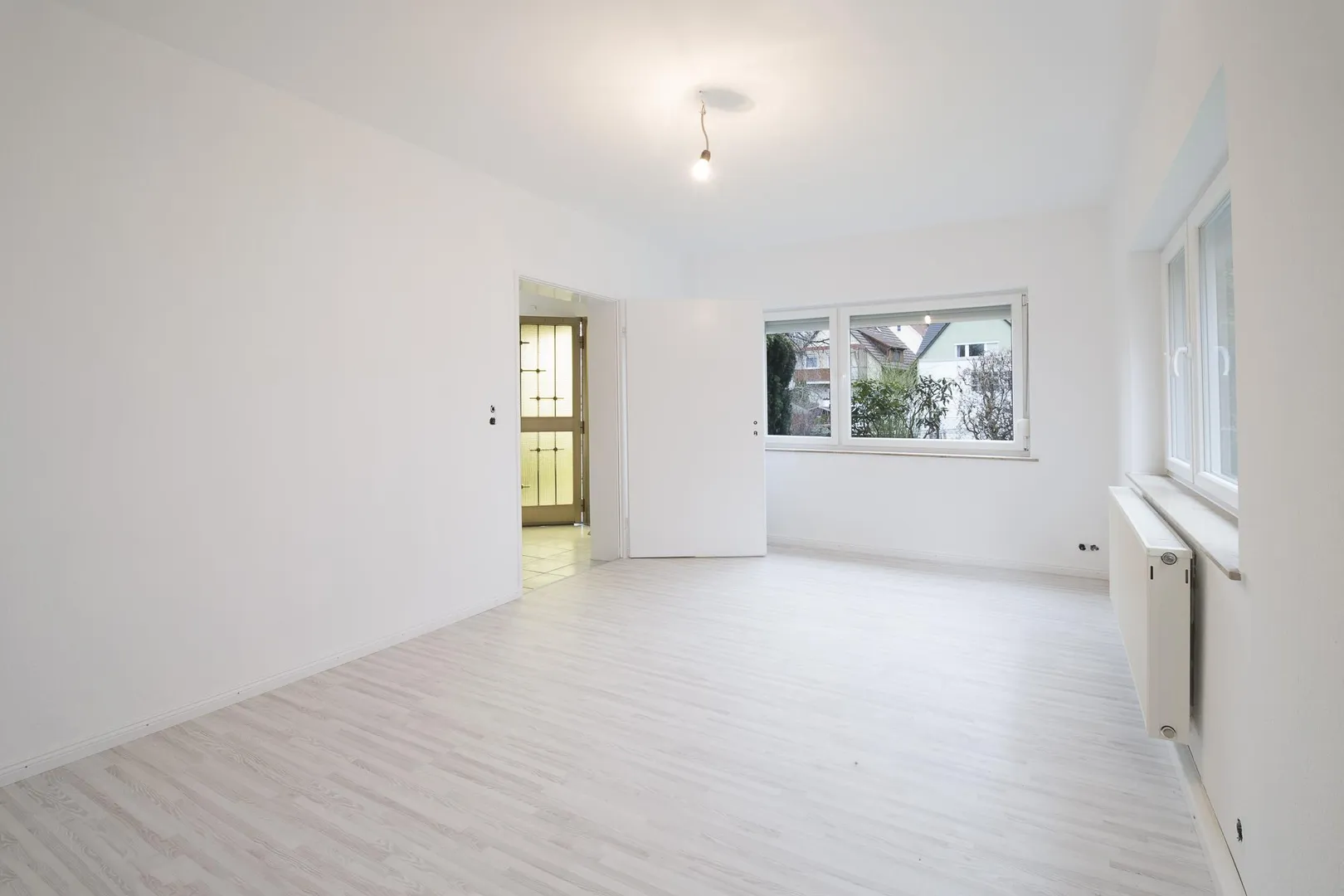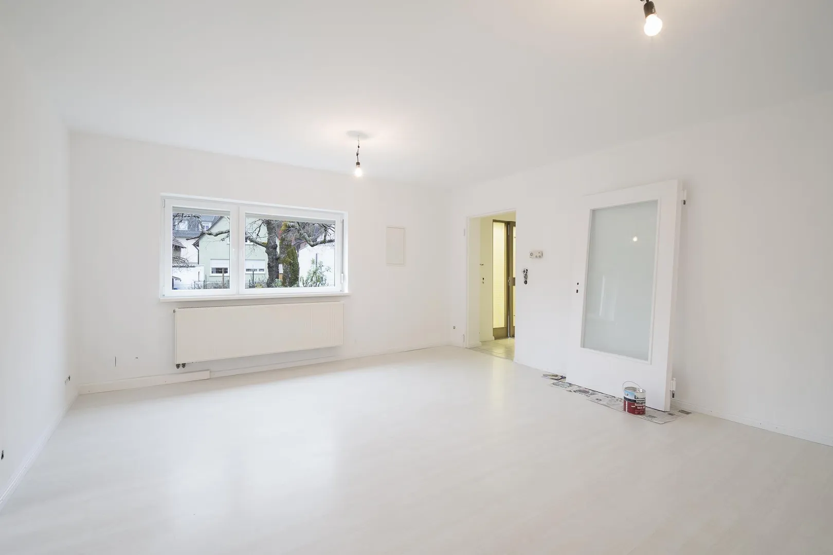 In den Zimmern sind Laminatböden verlegt. Die Wände wurden frisch tapeziert und sind weiß gestrichen.