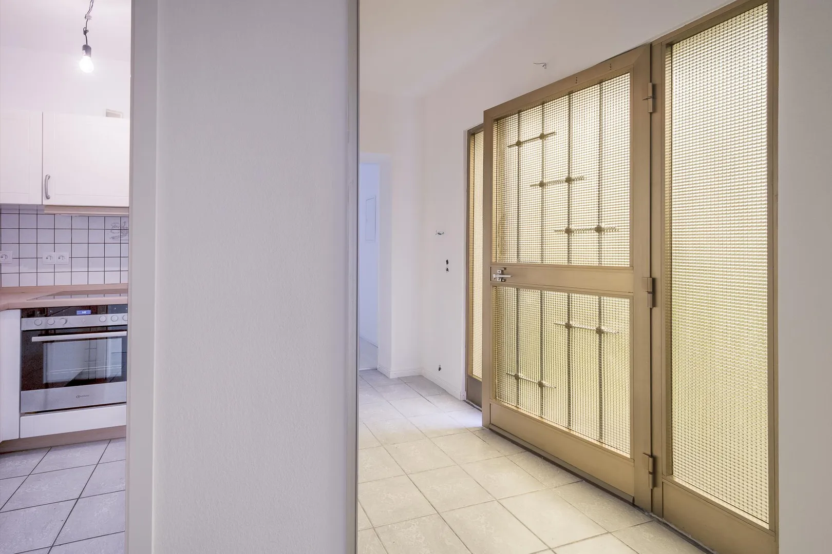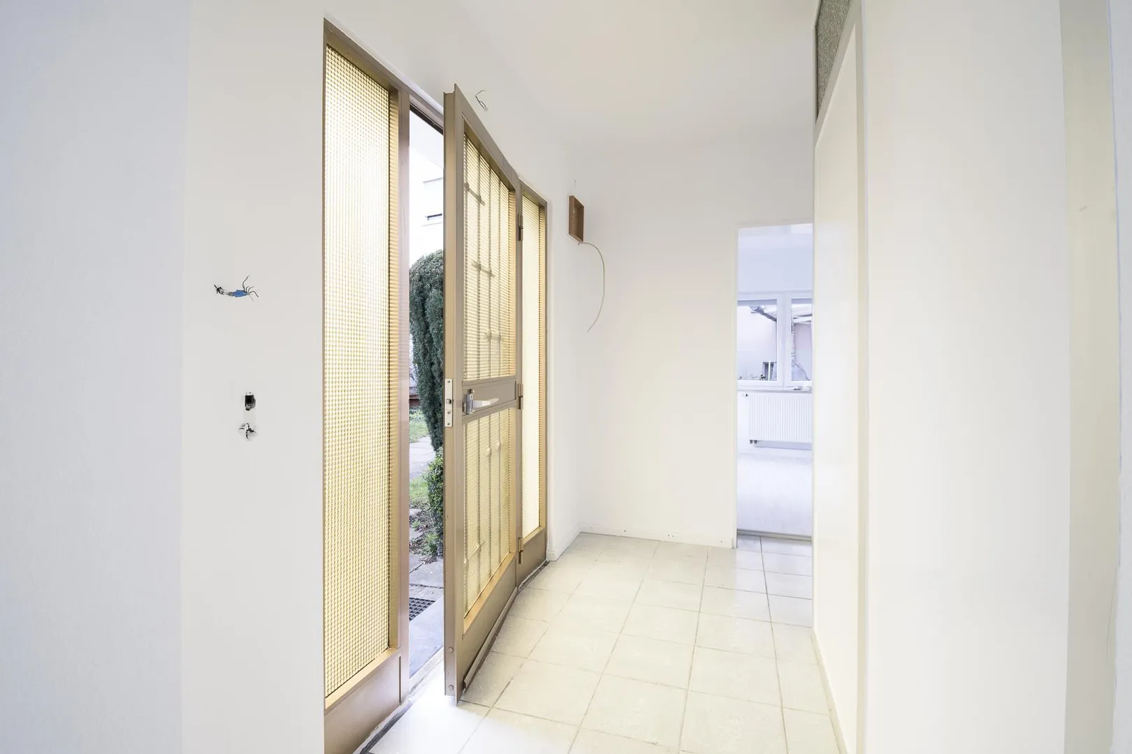 Der Boden im Flur ist gefliest.