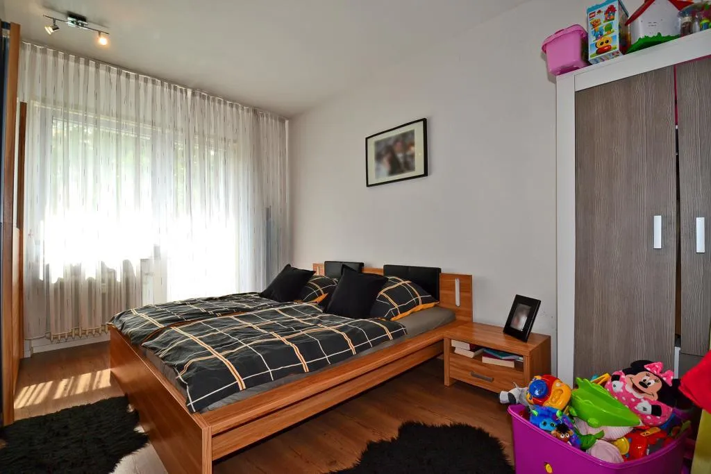Das Schlafzimmer ist über das Wohnzimmer begehbar. Der ca. 6,5 m² große Balkon ist vom Schlafzimmer begehbar.