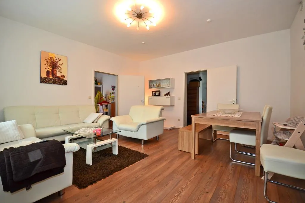 Diese modernisierte und gehoben ausgestattete 2-Zimmer-Wohnung befindet sich im Hochparterre (Erdgeschoss) eines 6-Familienhauses.