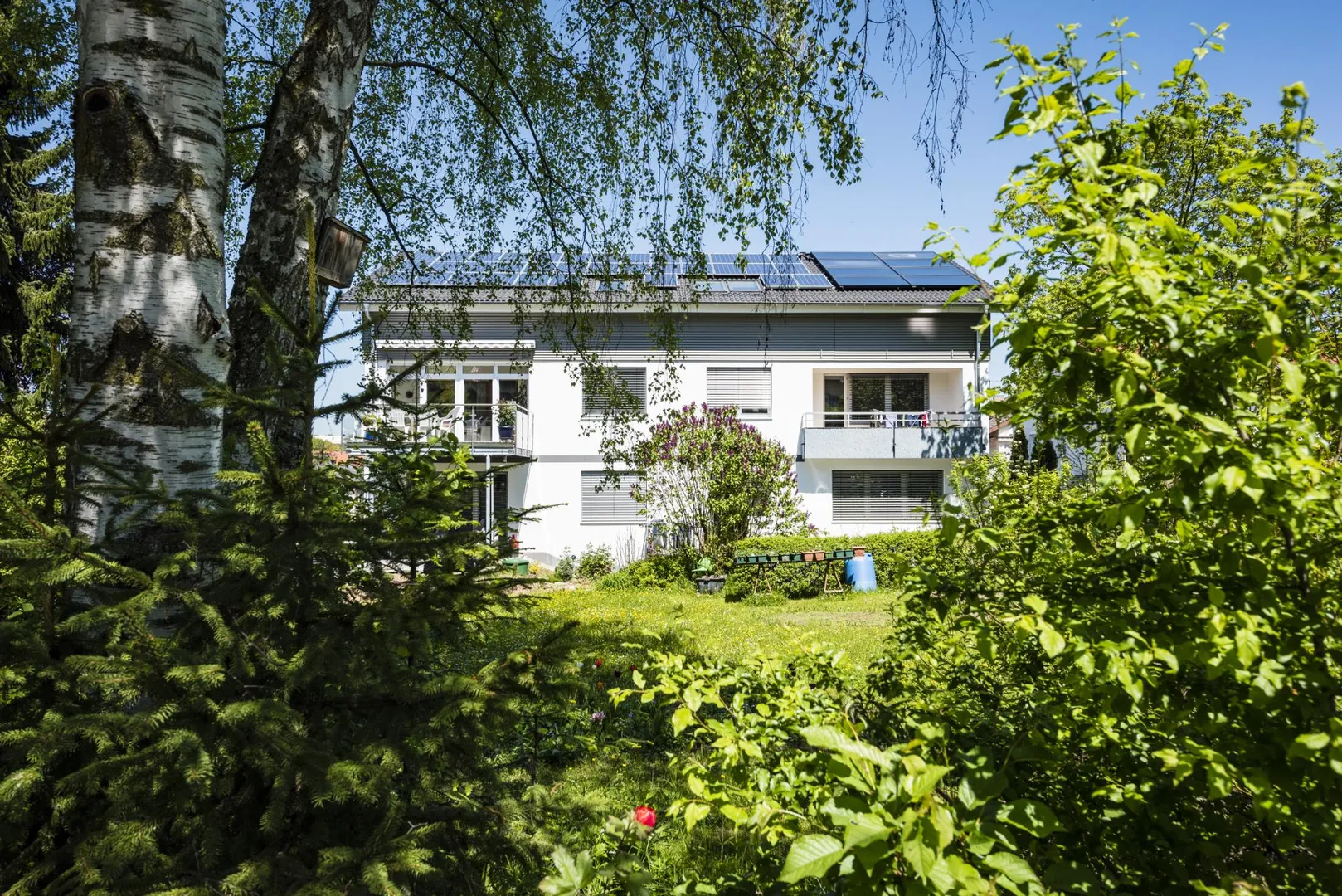 Die Zimmer und der Balkon verfügen über einen Blick in den Garten.