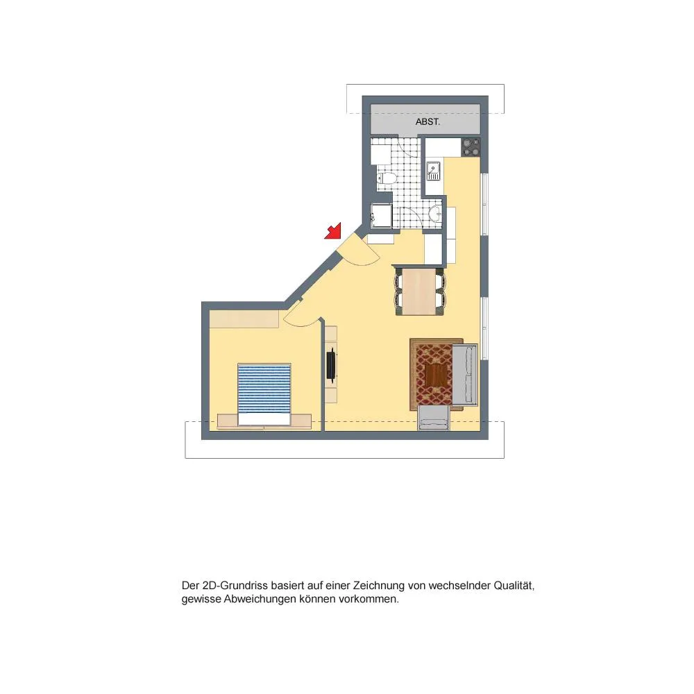 Der Grundriss ist offen gestaltet. Der Wohnbereich ist zum Eingangsbereich und zur Küche hin offen.