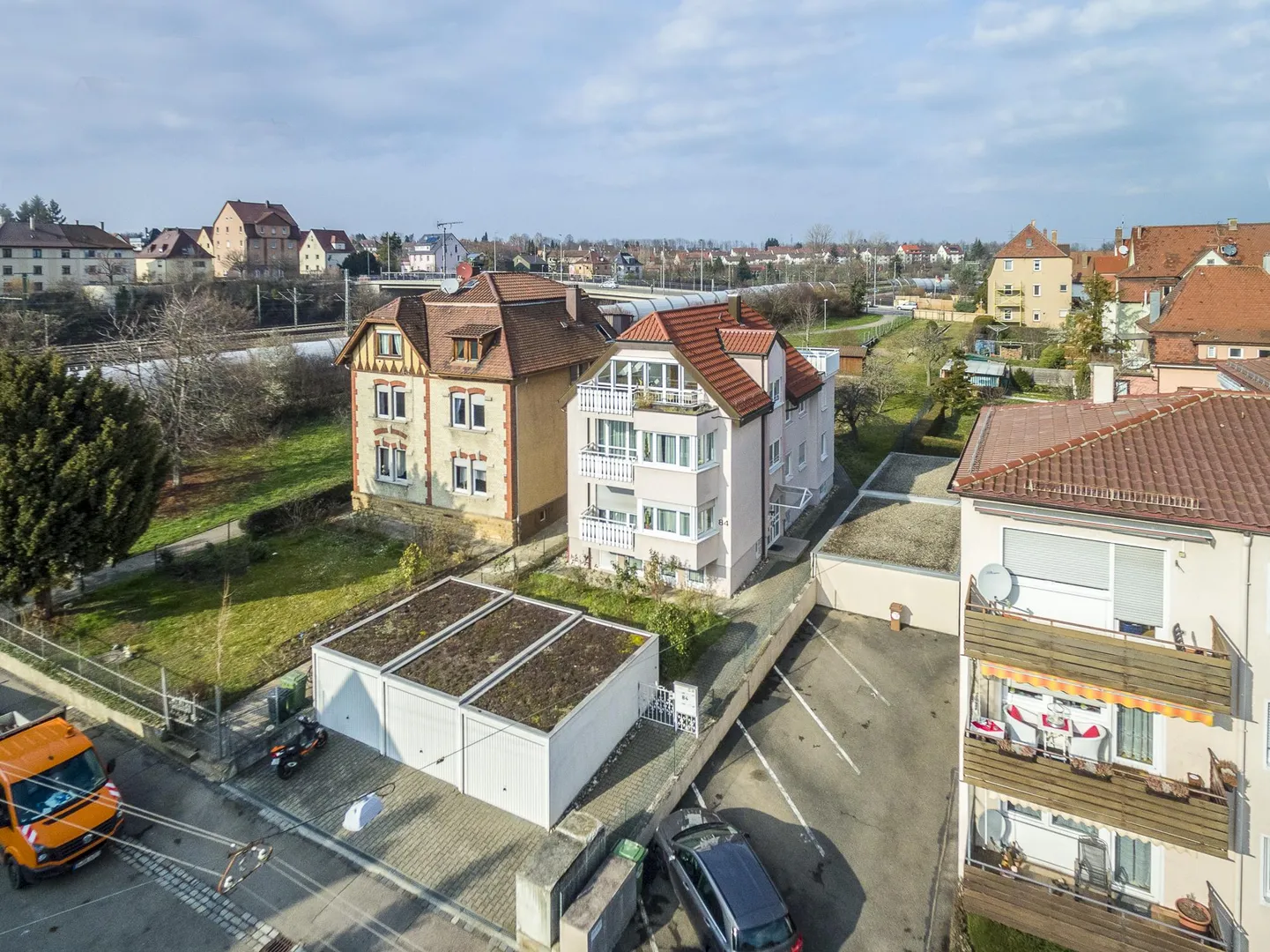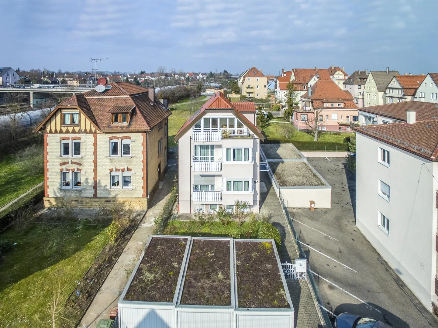 Die Wohnung befindet sich in einer zentrumsnahen Lage am Ende einer Sackgasse.