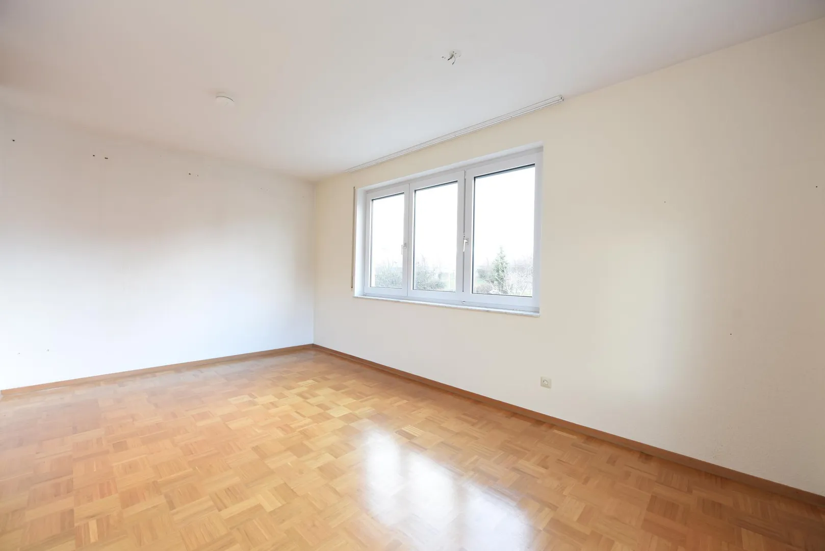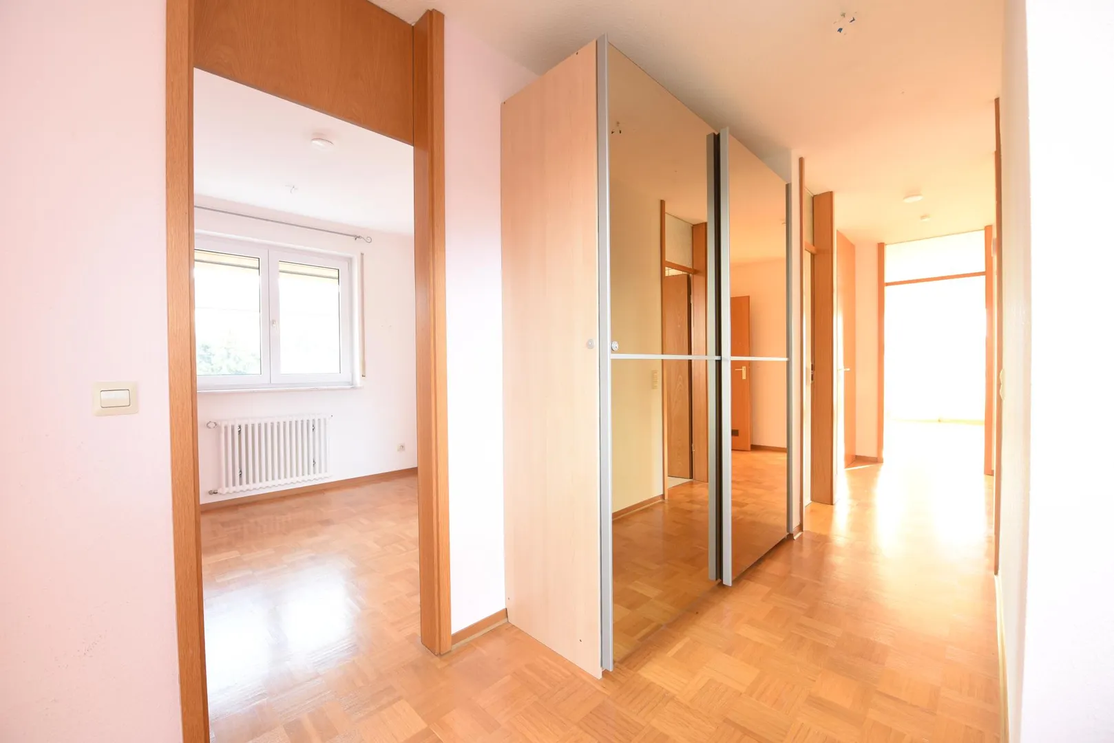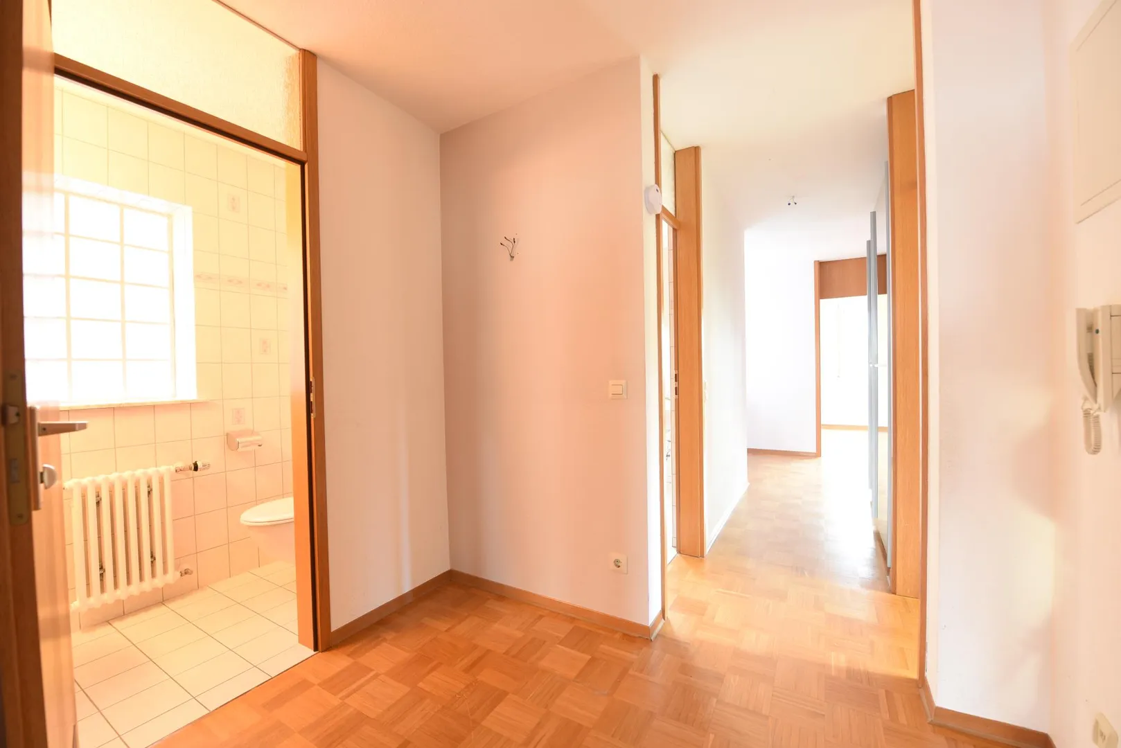 Die Böden im Flur und in den Zimmern sind mit Parkett ausgestattet. Die Wände sind mit Raufasertapeten tapeziert. Die Wohnung befindet sich in einem gepflegten Zustand, jedoch sind Malerarbeiten beim Einzug notwendig. Die Raumhöhen betragen ca. 2,44 Meter.
