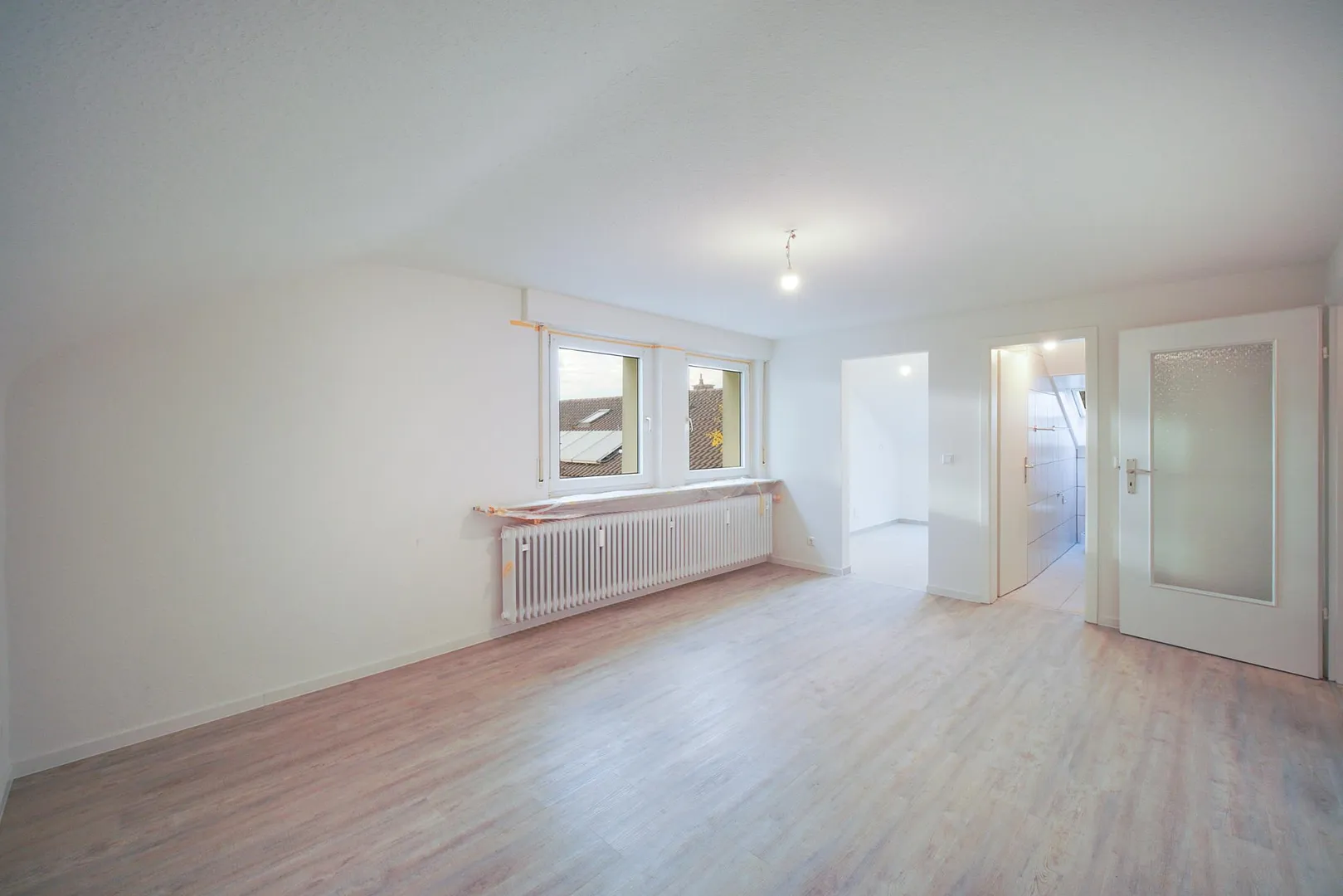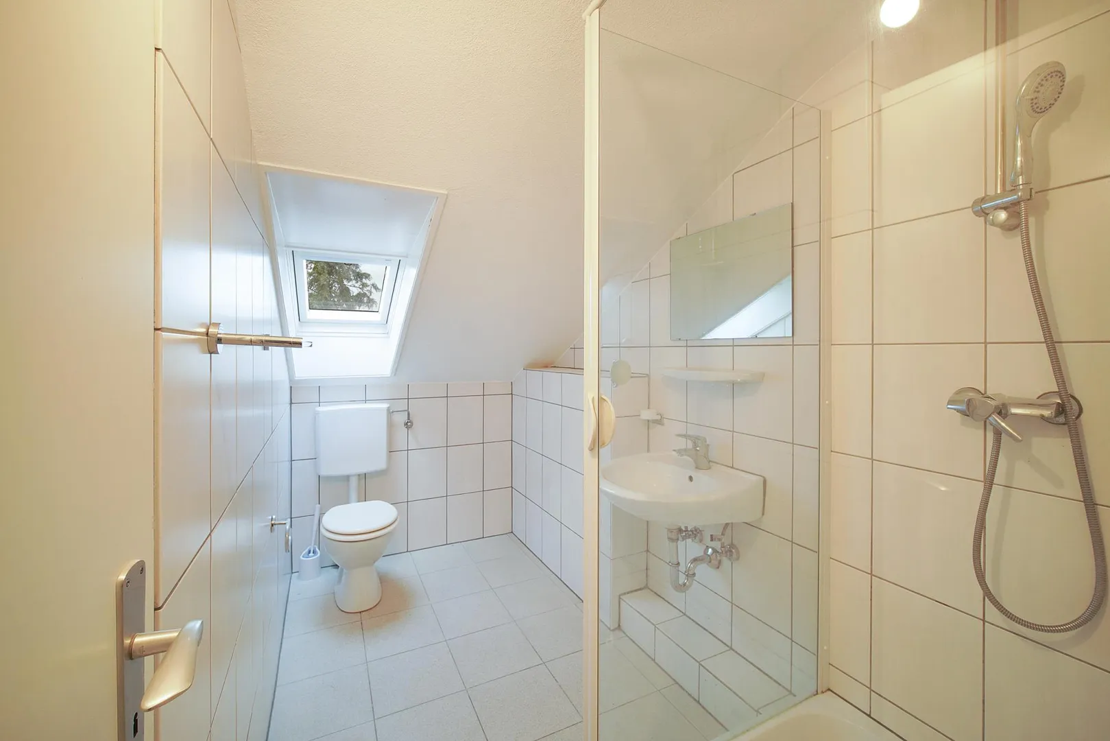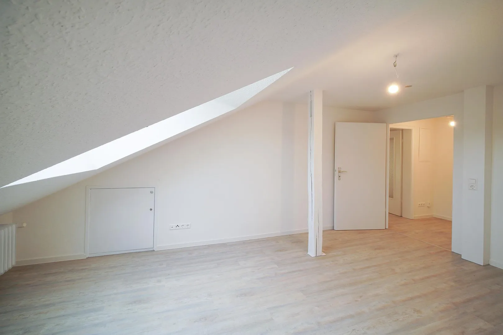 Diese frisch modernisierte und gemütliche 2-Zimmer-Dachgeschoss-Wohnung, ohne Balkon, für eine sportliche Einzelperson (absoluten Nichtraucher), befindet sich im 2. Obergeschoss.