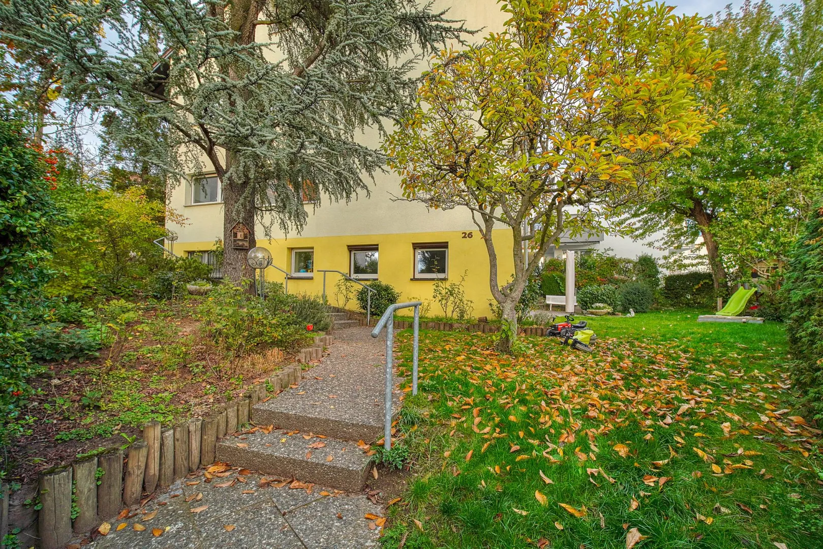 Das Haus befindet sich in einer ruhigen und sonnigen Süd-Hanglage am Rand vom Korntal-West.