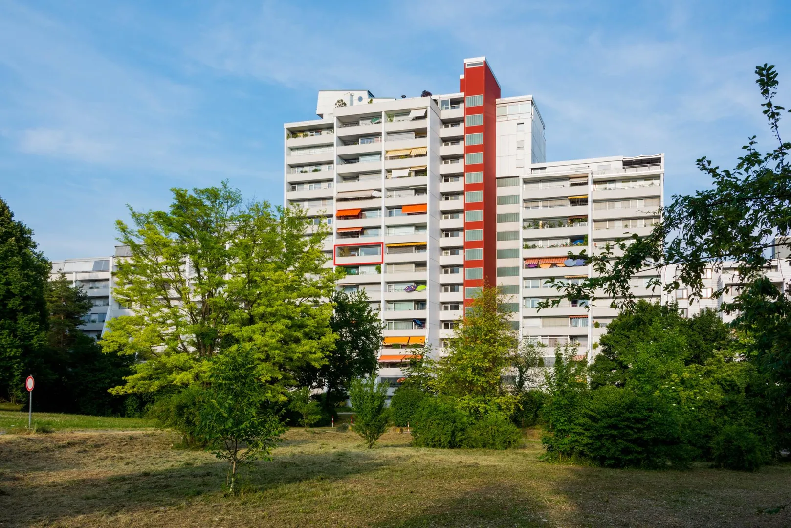 Das "Apollo"-Hochhaus wurde ca. 1972, massiv, 16-geschossig mit Flachdächern erbaut. Es ist 2-fach unterkellert und verfügt im Untergeschoss über eine Tiefgarage, Abstellräume sowie ein Schwimmbad mit Sauna.