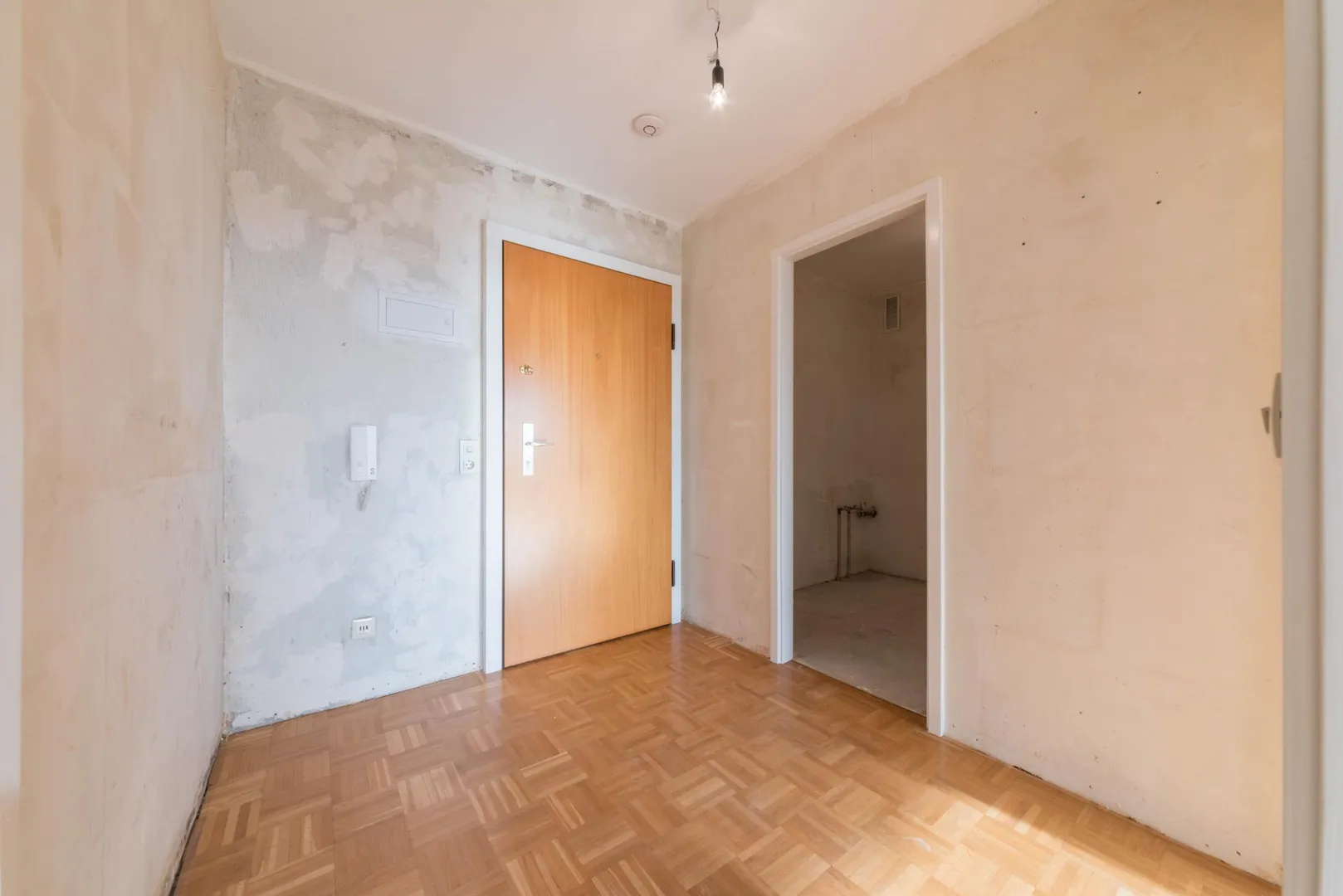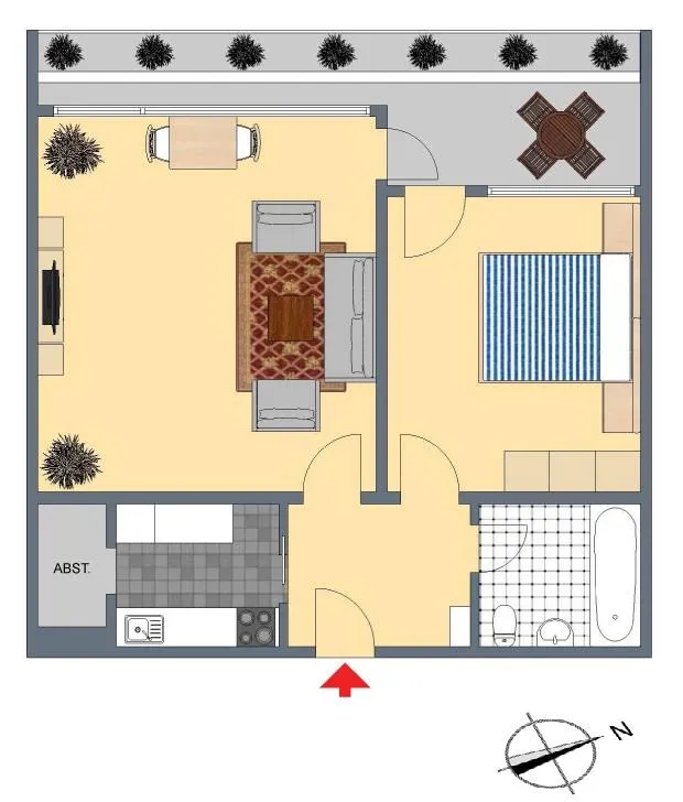 2 Zimmer, Küche und Bad sind direkt vom Flur begehbar. Ein Abstellraum befindet sich hinter der Küche.