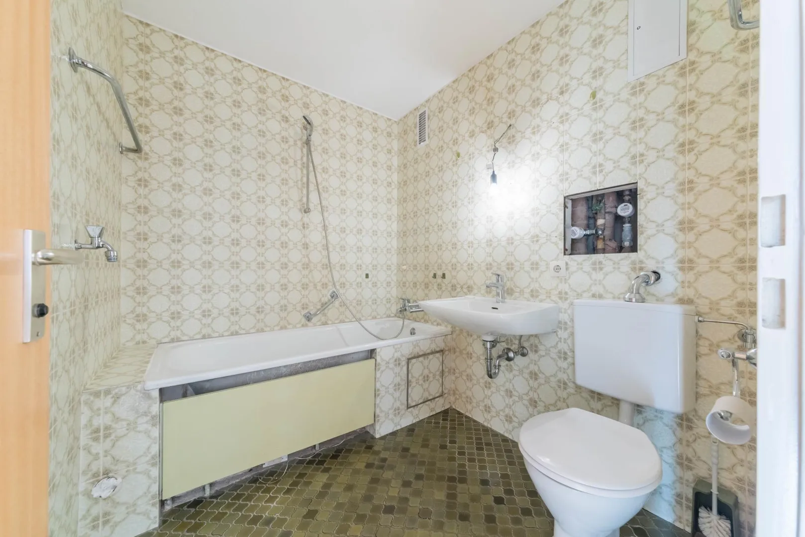 Die komplette Wohnungsausstattung ist aus dem Ursprungsbaujahr. Die Sanierungskosten betragen ca. 35.000 EUR (Bad, Fenster, Elektrik, Böden und Wände).
