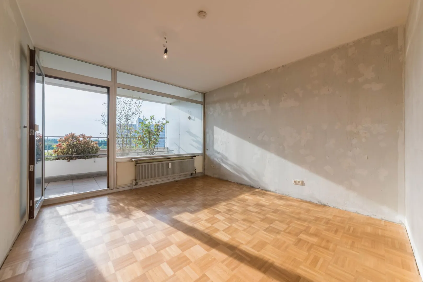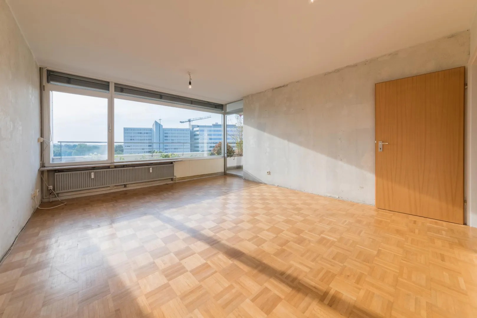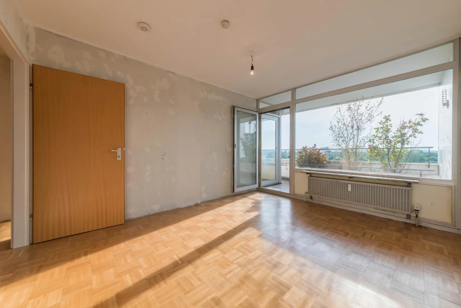 Diese sanierungsbedürftige 2-Zimmer-Wohnung befindet sich im 8. Obergeschoss eines gehobenen Hochhauses.