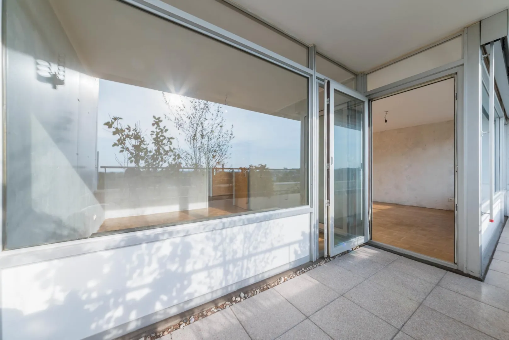 Durch die Nord/West-Ausrichtung der Wohnung (Richtung Kaufpark-Freiberg) bekommen die Zimmer sowie der Balkon ab ca. 16 Uhr Sonne. Die komplette Nord-West Seite ist mit Panoramafenstern ausgestattet. Die Fensterrahmen sind aus Aluminium.