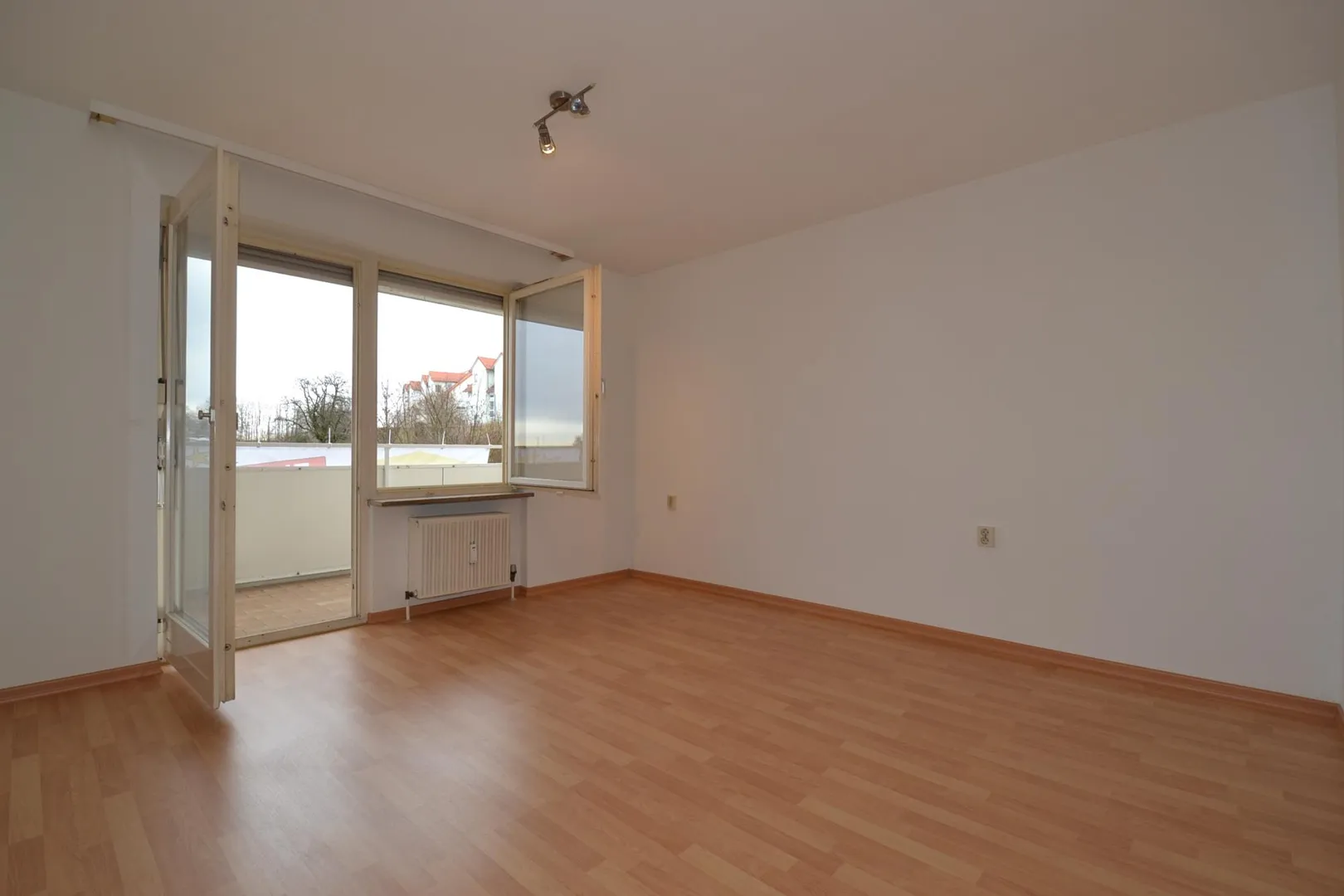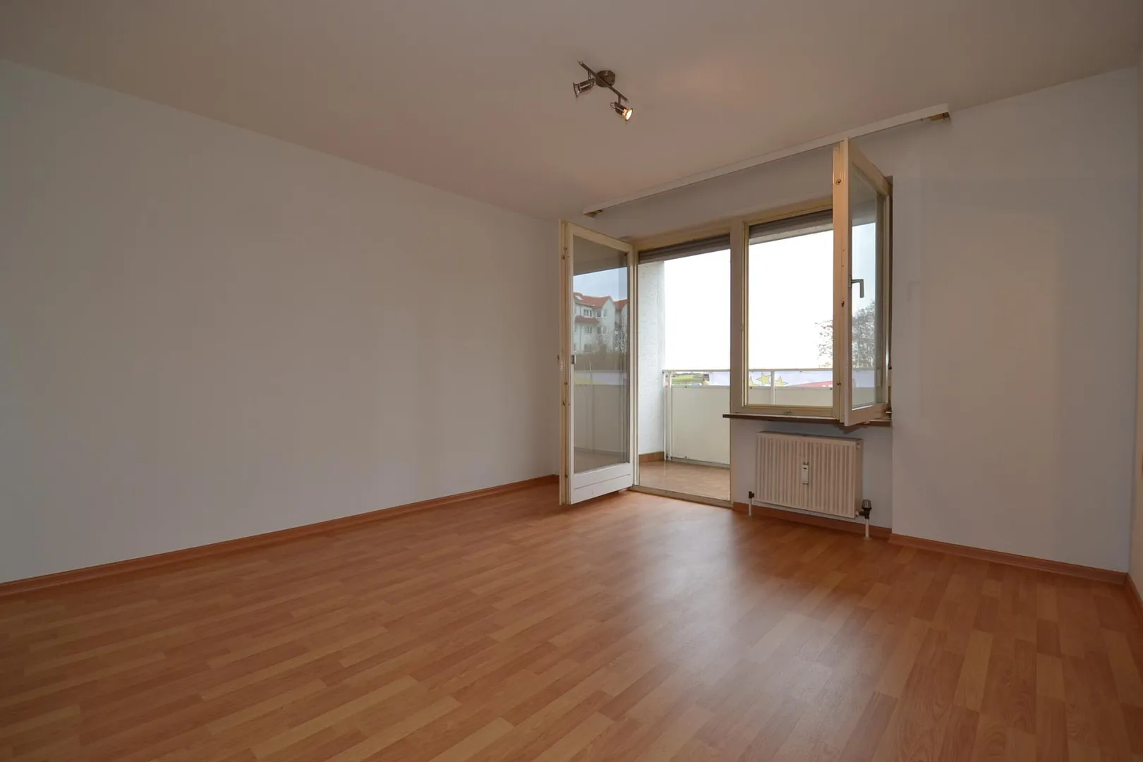 Wohn- & Schlafzimmer sind nach Osten ausgerichtet. In den Zimmern ist neuer Laminatboden verlegt. Die Wände sind mit Raufasertapeten tapeziert und weiß gestrichen.