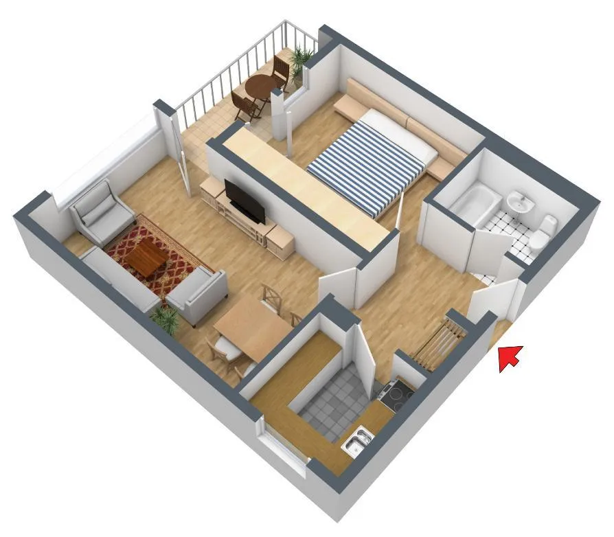 Diese bequeme und renovierte 2 Zimmer-Wohnung befindet sich im 1. Obergeschoss.