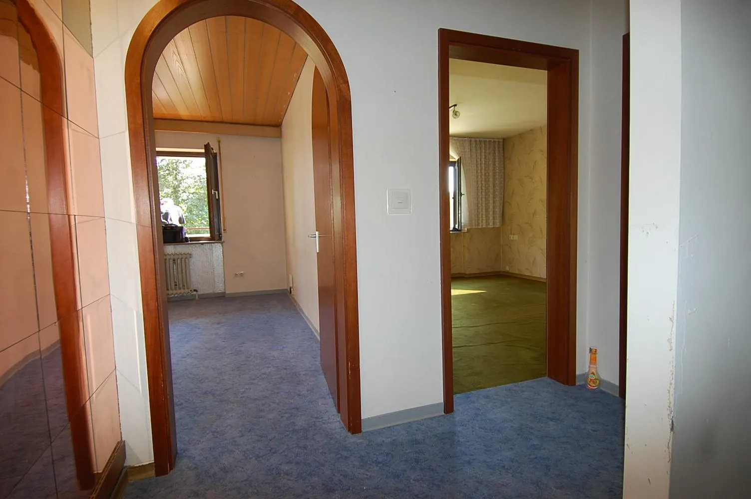 Diese helle 2 - 3 Zimmerwohnung liegt im 1.Obergeschoss eines ca.1977 in Massivbauweise komplett unterkellerten 7. Geschossigen mit Flachdach ausgestatteten Hauses.