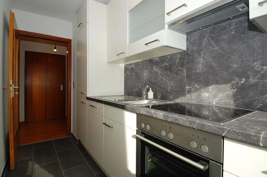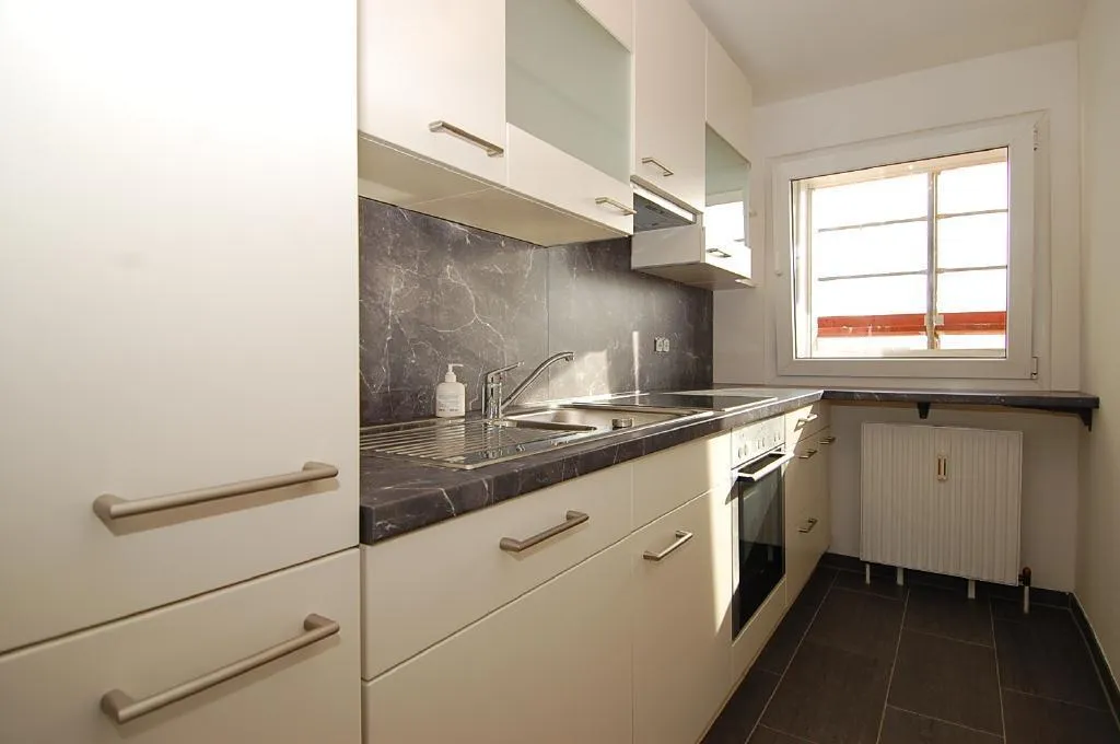 Zur Wohnung gehören eine neue Einbauküche, ein Abstellraum im Untergeschoss und ein Kfz-Stellplatz in der Tiefgarage.
