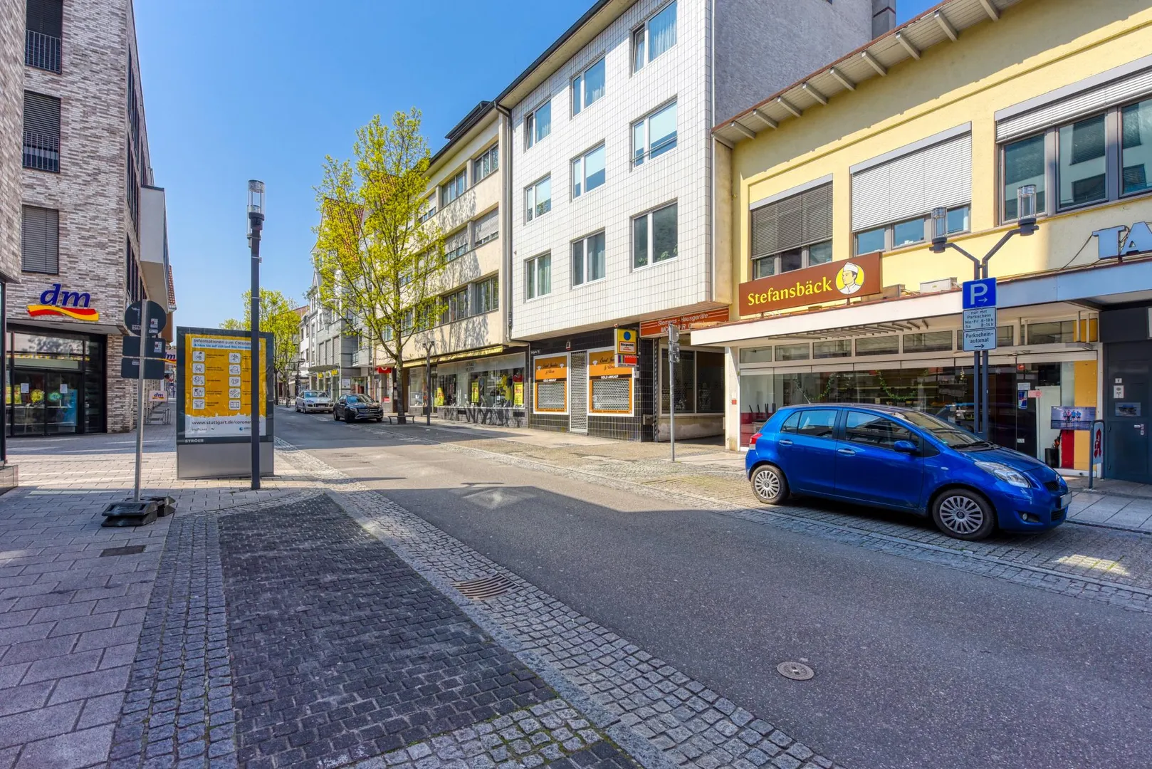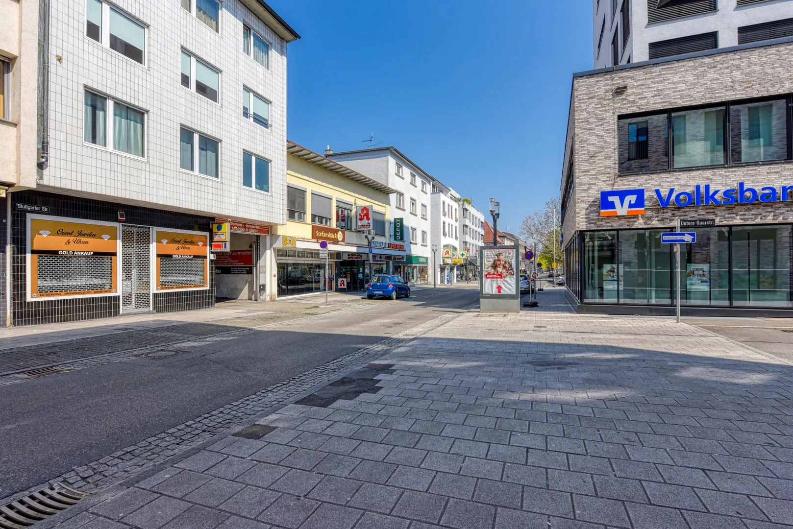 Die Wohnung befindet sich in der "Stuttgarter Straße", der Haupteinkaufsstraße von Stuttgart-Feuerbach.