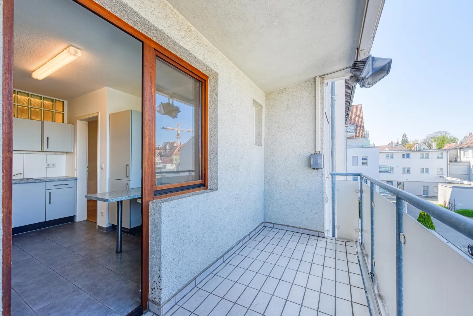 Der Grundriss ist gut. Alle Räume sind direkt vom Flur begehbar. Der ca. 5,5 m² große und überdachte Balkon ist nach Nord-Westen ausgerichtet und ist über die Küche begehbar. Das geflieste WC mit Fenster ist separat. In der Wohnung befindet sich ein Abstellraum.
