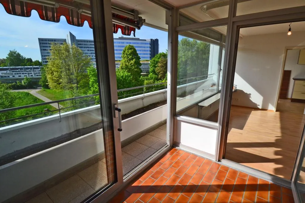 Der Balkon verfügt über einen Wintergarten mit Schiebetür, eine Markise sowie über ein Pflanzenbeet. Der Wintergarten ist über das Wohnzimmer und über das Schlafzimmer begehbar.