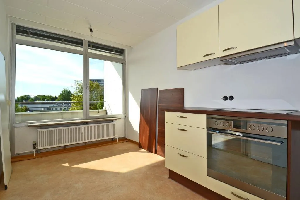 Das "Apollo"-Hochhaus wurde ca. 1972, massiv, 16-geschossig und mit Flachdächern erbaut. Es ist 2-fach unterkellert und verfügt im Untergeschoss über eine Tiefgarage, Abstellräume sowie ein Schwimmbad mit Sauna.