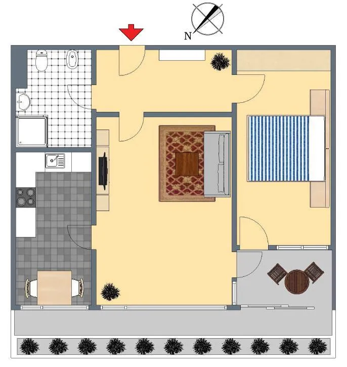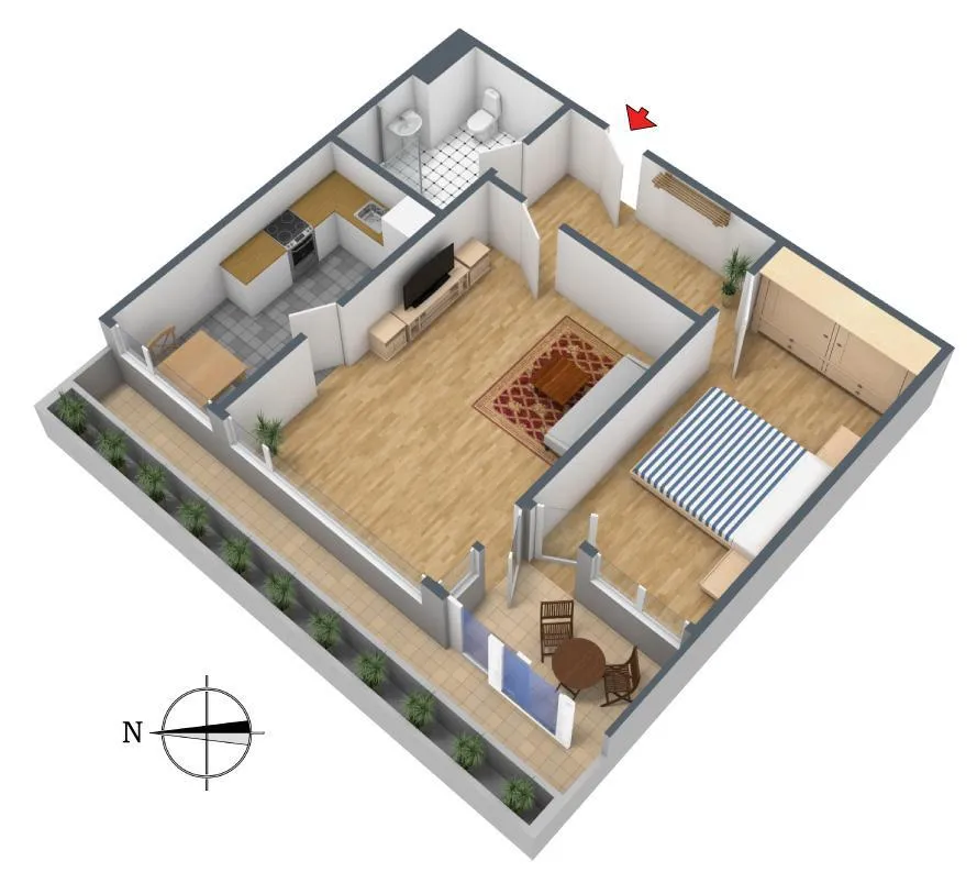 Hier wohnen Sie bequem in West-Nord Ausrichtung.
