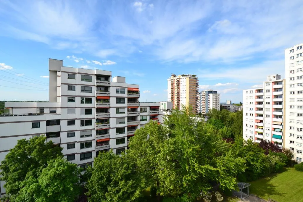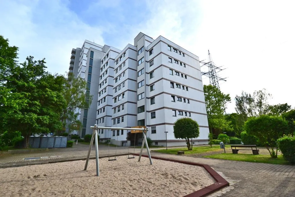 Diese bequeme und neuwertige 2-Zimmer-Wohnung befindet sich im 6. Obergeschoss eines 15-Familien-Reiheneck-Hochhauses.