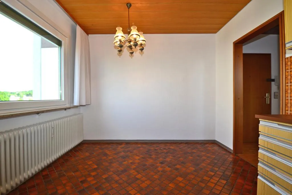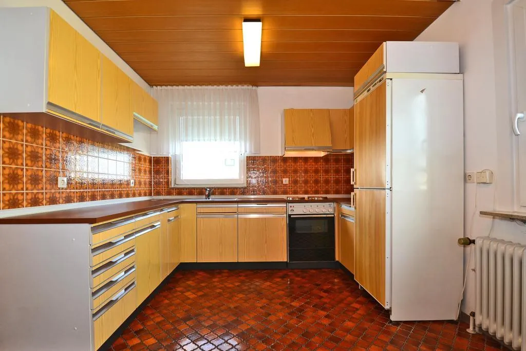 Die Küche ist mit einer älteren und einfachen Einbauküche ausgestattet. Die Einbauküche darf auf eigene Kosten entsorgt werden.