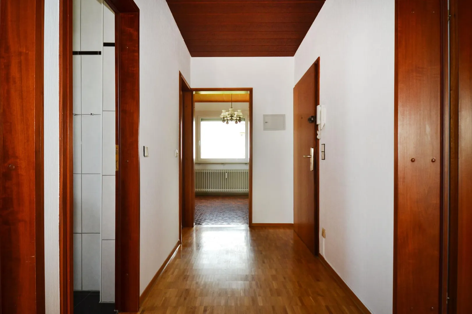 Der Grundriss ist sehr gut. Alle Räume sind vom Flur begehbar. Das Badezimmer und das separate WC verfügen über ein Fenster. Der knapp 9 m² große und überdachte West-Balkon ist über das Wohnzimmer begehbar. Ein Abstellraum mit Waschmaschinenanschluss befindet sich in der Wohnung.