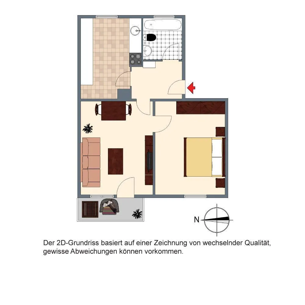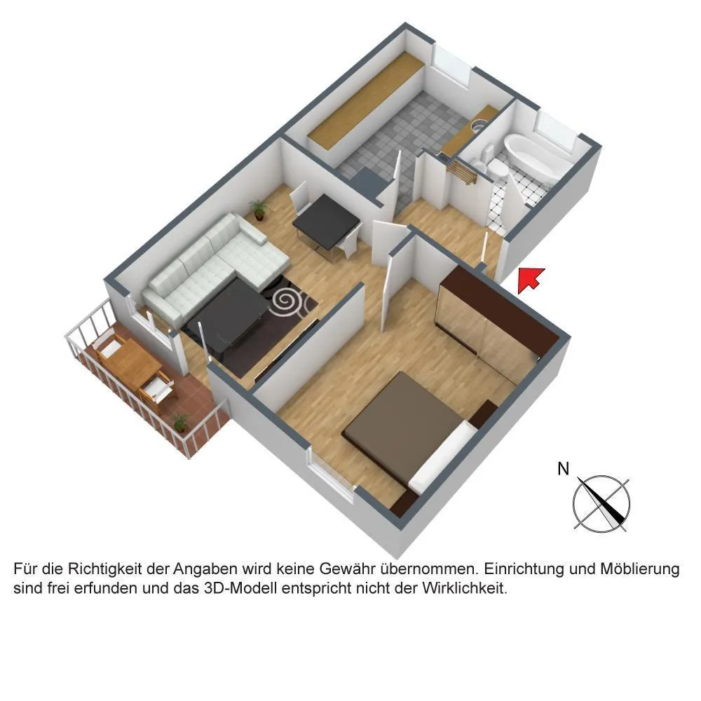 Bitte beachten Sie, dass die Wohnung auf den Bildern größer wirkt als sie eigentlich ist. Die Bilder sollen Ihnen zur Orientierung dienen. Grundrisse und Flächenberechnung liegen dem Exposé anbei.