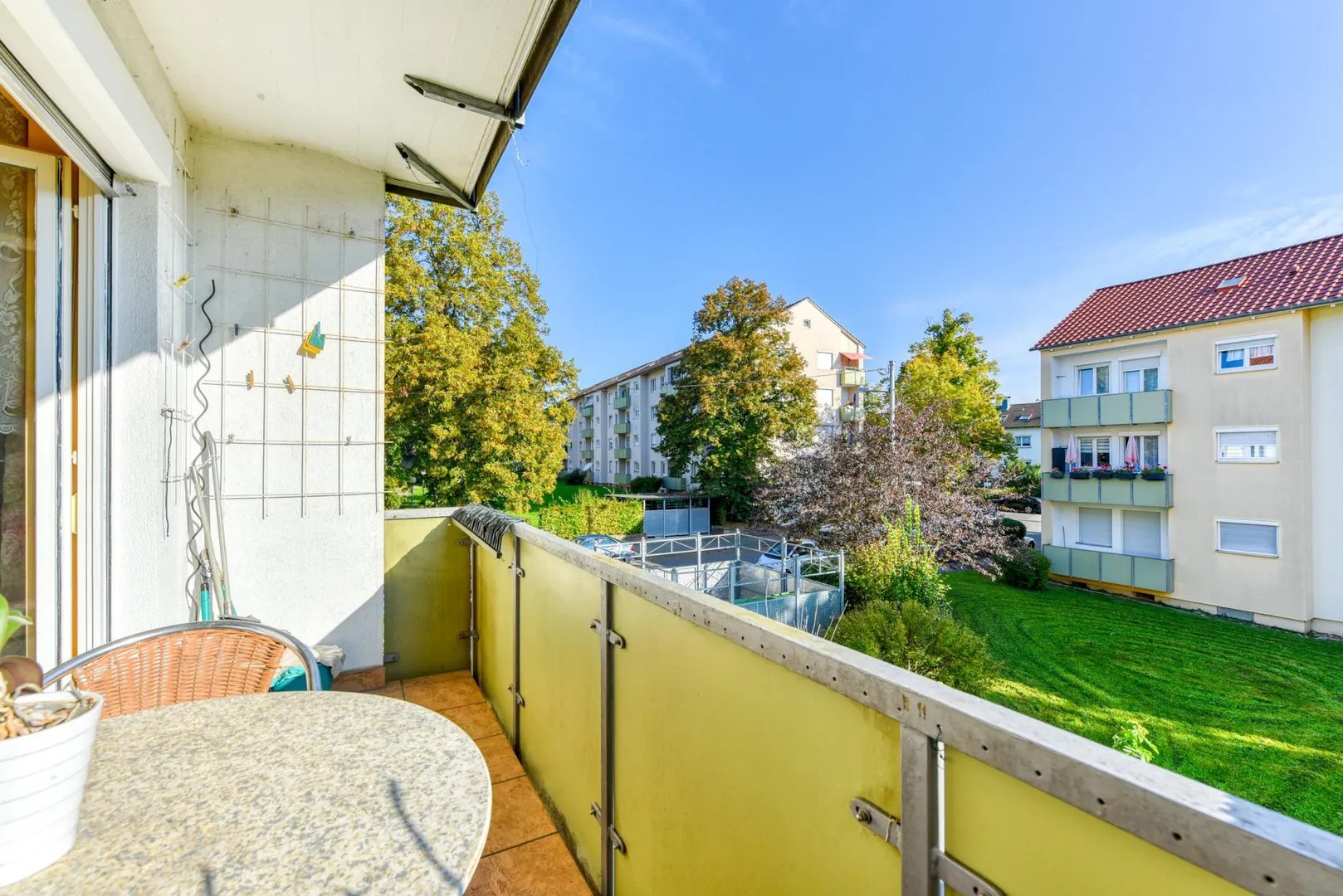 Die Wohnung verfügt über eine ca. 4 m² großen und überdachten Nord/Ost-Balkon, welcher über das Wohnzimmer begehbar ist.
