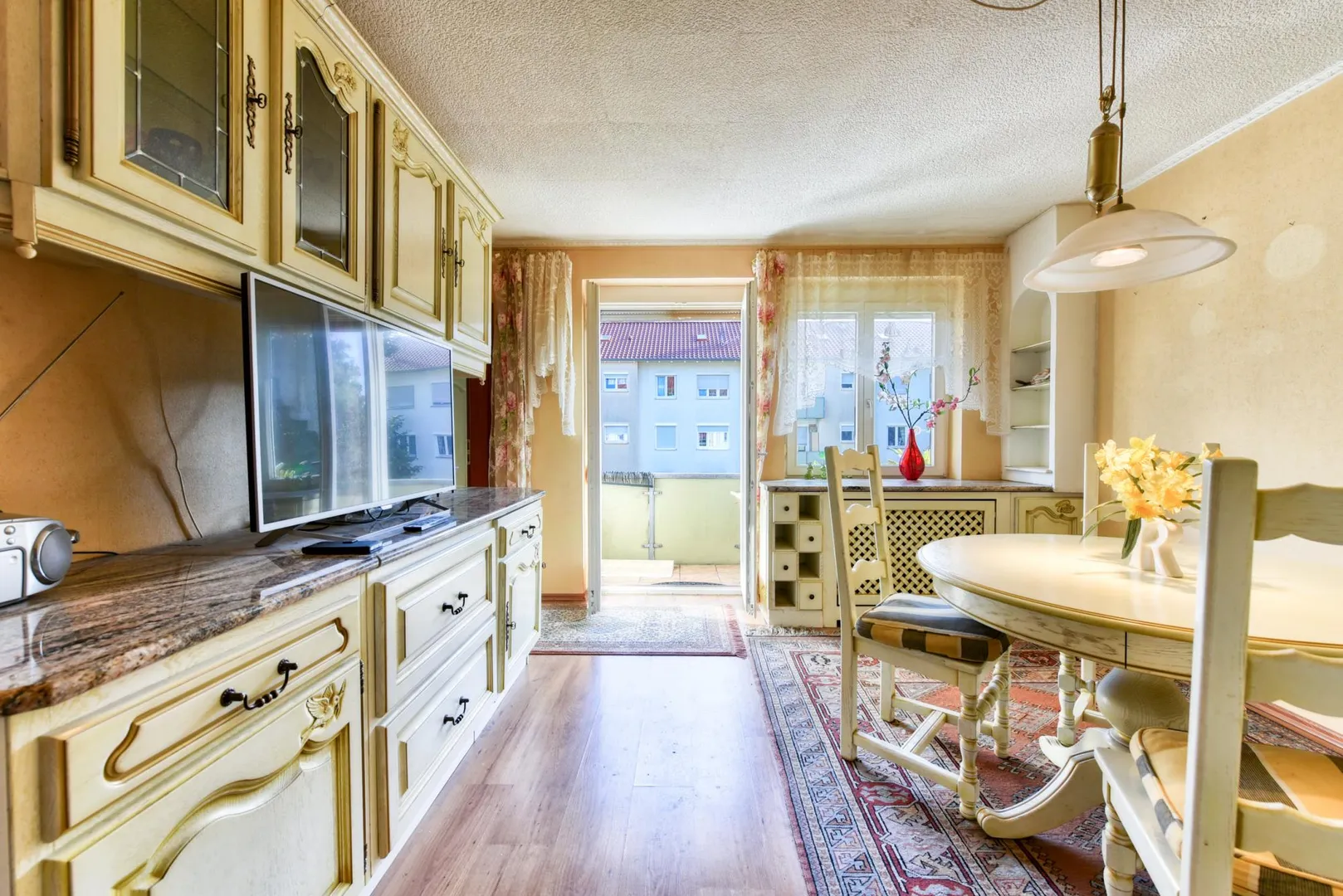 Diese gemütliche und renovierungsbedürftige 3-Zimmer-Wohnung mit Balkon befindet sich im 1. Obergeschoss.