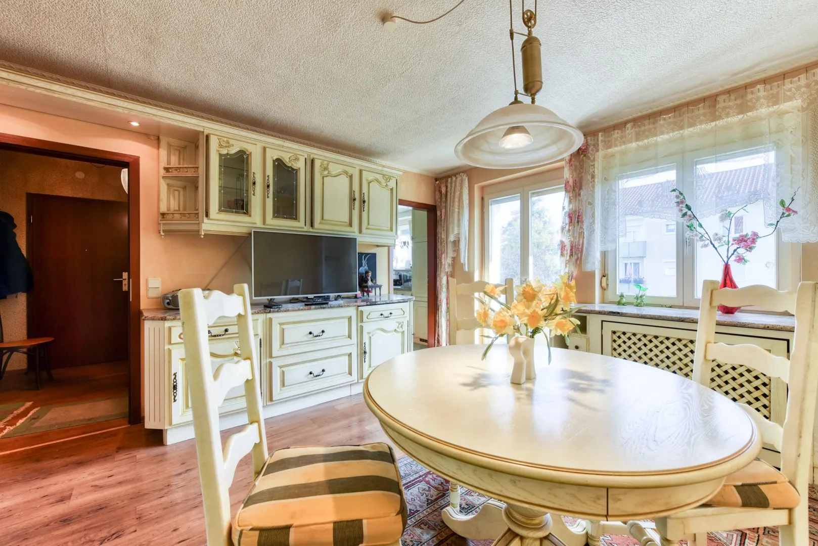 Diese gemütliche und renovierungsbedürftige 3-Zimmer-Wohnung mit Balkon befindet sich im 1. Obergeschoss eines 6-Familien-Reihenmittelhauses.