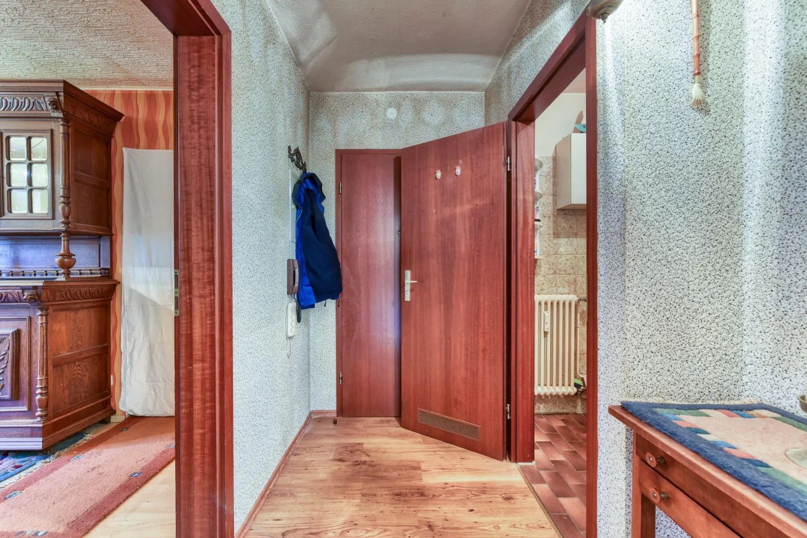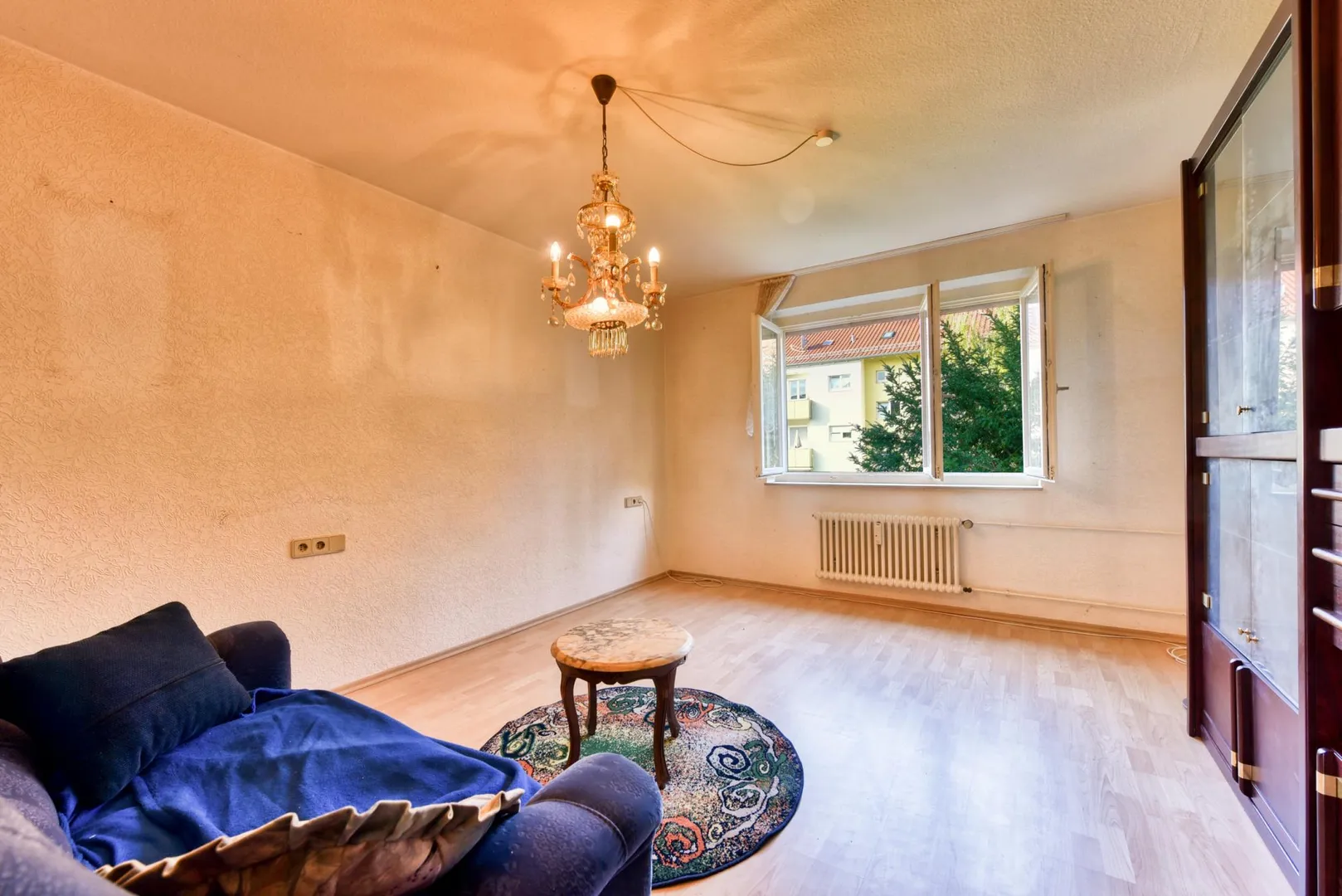 Die Wände sind tapeziert. In der Wohnung sind Maler- und Tapezierarbeiten notwendig. Die Raumhöhe beträgt ca. 2,46 Meter.