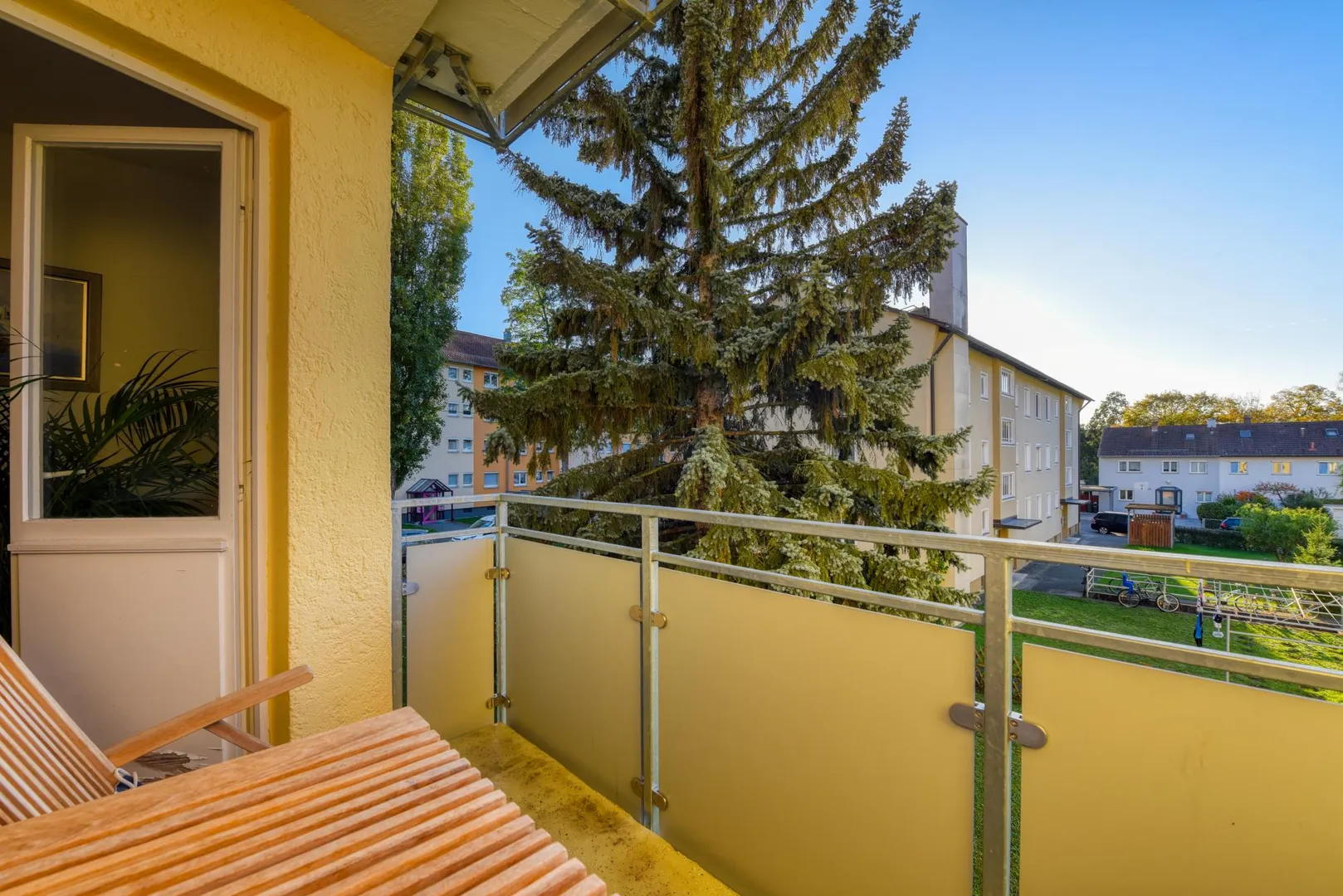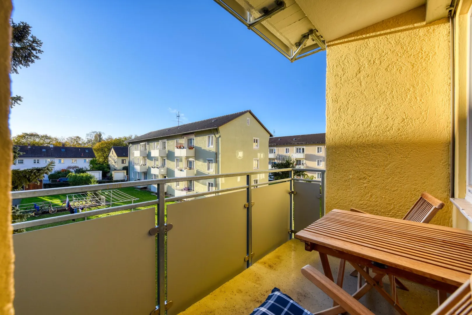 Die Zimmer und der Balkon sind nach Westen ausgerichtet. Die Küche und das Badezimmer sind nach Osten ausgerichtet.