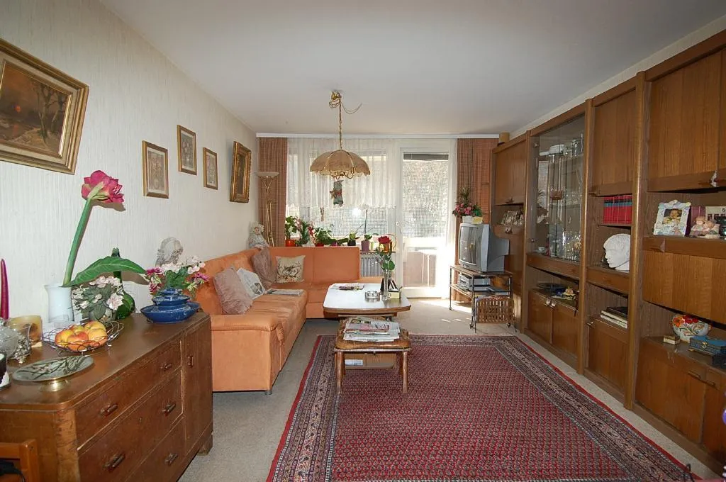 Das Wohnzimmer ist nach Süden ausgerichtet und mit Teppichboden ausgestattet.