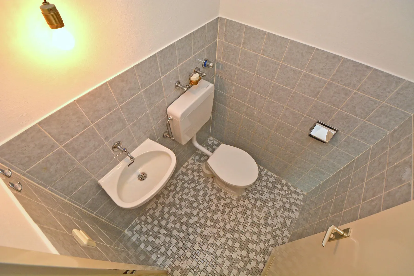 Alle Böden sind gefliest. Die Wände sind überwiegend mit Raufasertapete tapeziert und sind frisch gestrichen. Die Raumhöhen betragen ca. 2,37 Meter.