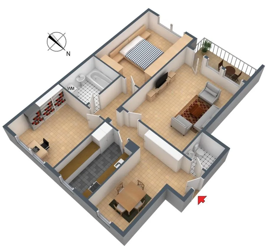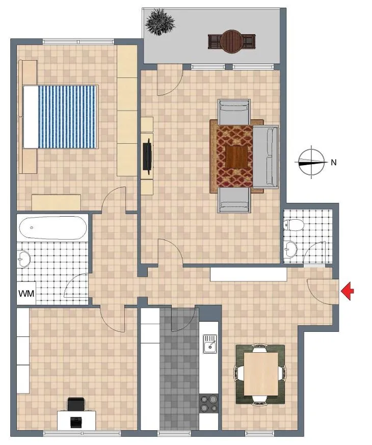 Der Grundriss ist gut. Alle Räume sind direkt vom Flur begehbar. Der ca. 6 m² große und überdachte West-Balkon mit Fernblick ist über das Wohnzimmer begehbar.