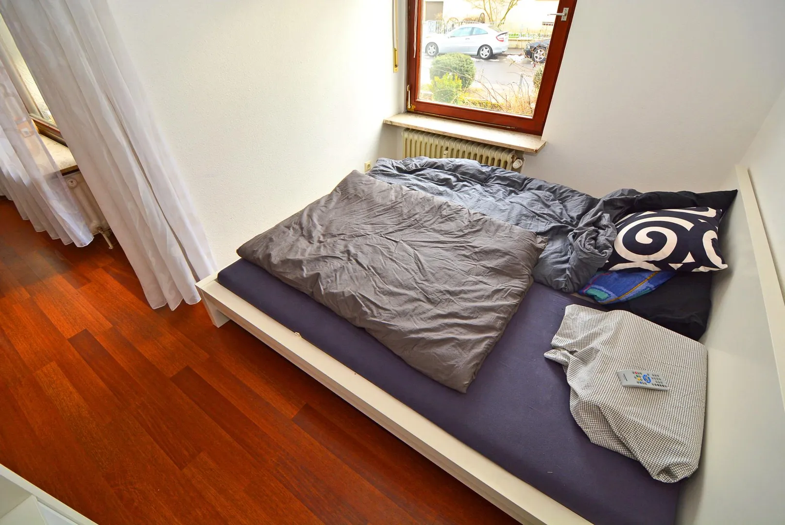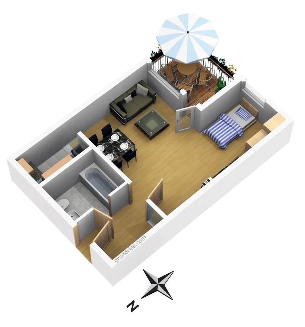 Der ca. 5,5 m² große und überdachte Balkon sowie das Zimmer sind nach Süden ausgerichtet.
