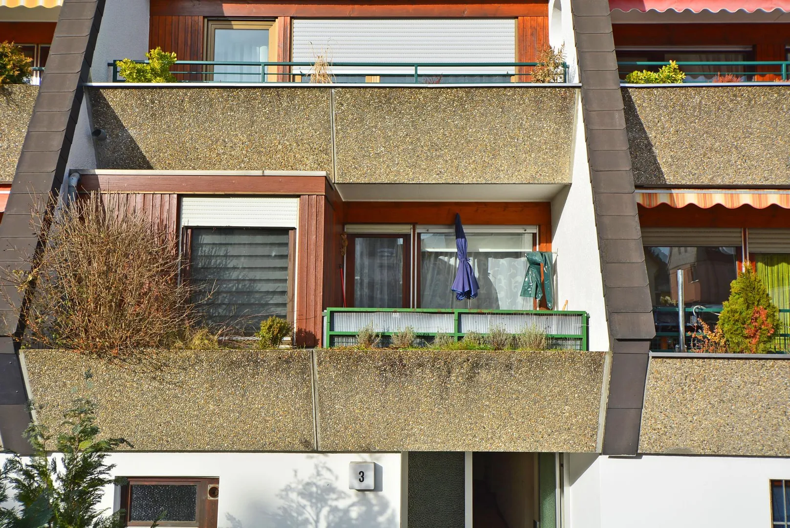 Das Haus wurde ca. 1975, massiv, 3-geschossig mit Flachdach und Tiefgarage erstellt.