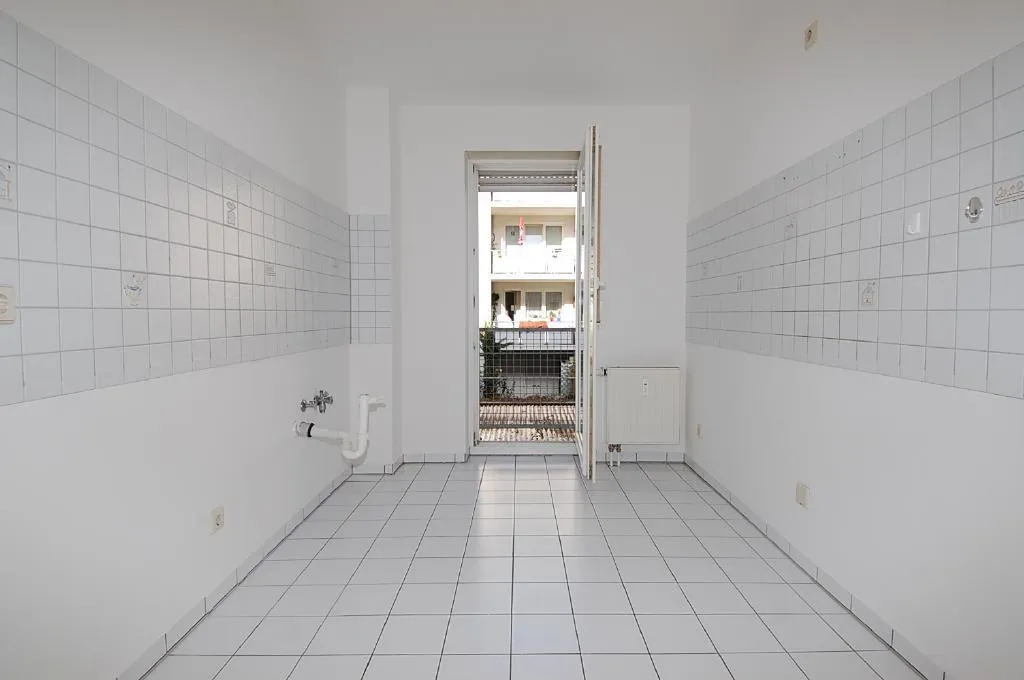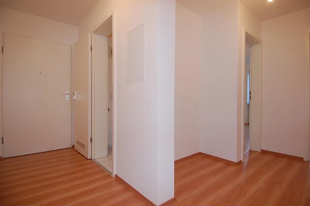 Der Grundriss ist sehr gut. Jeder Raum ist vom Flur aus erreichbar. Der überdachte Balkon ist nach Süden ausgerichtet. Das WC ist separat. Der Küchenboden ist gefliest.